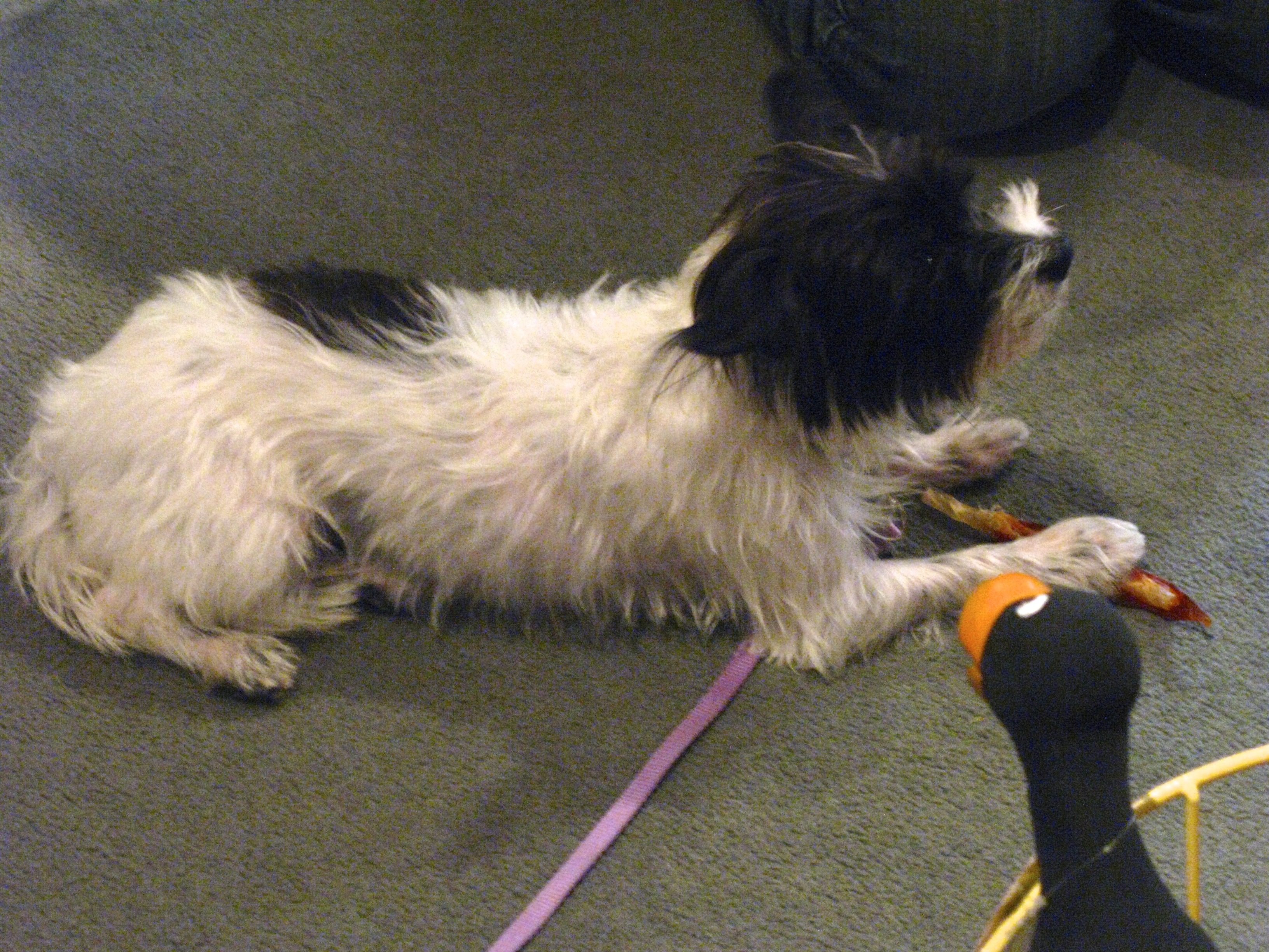 Later he is given a chew bone for his patience.