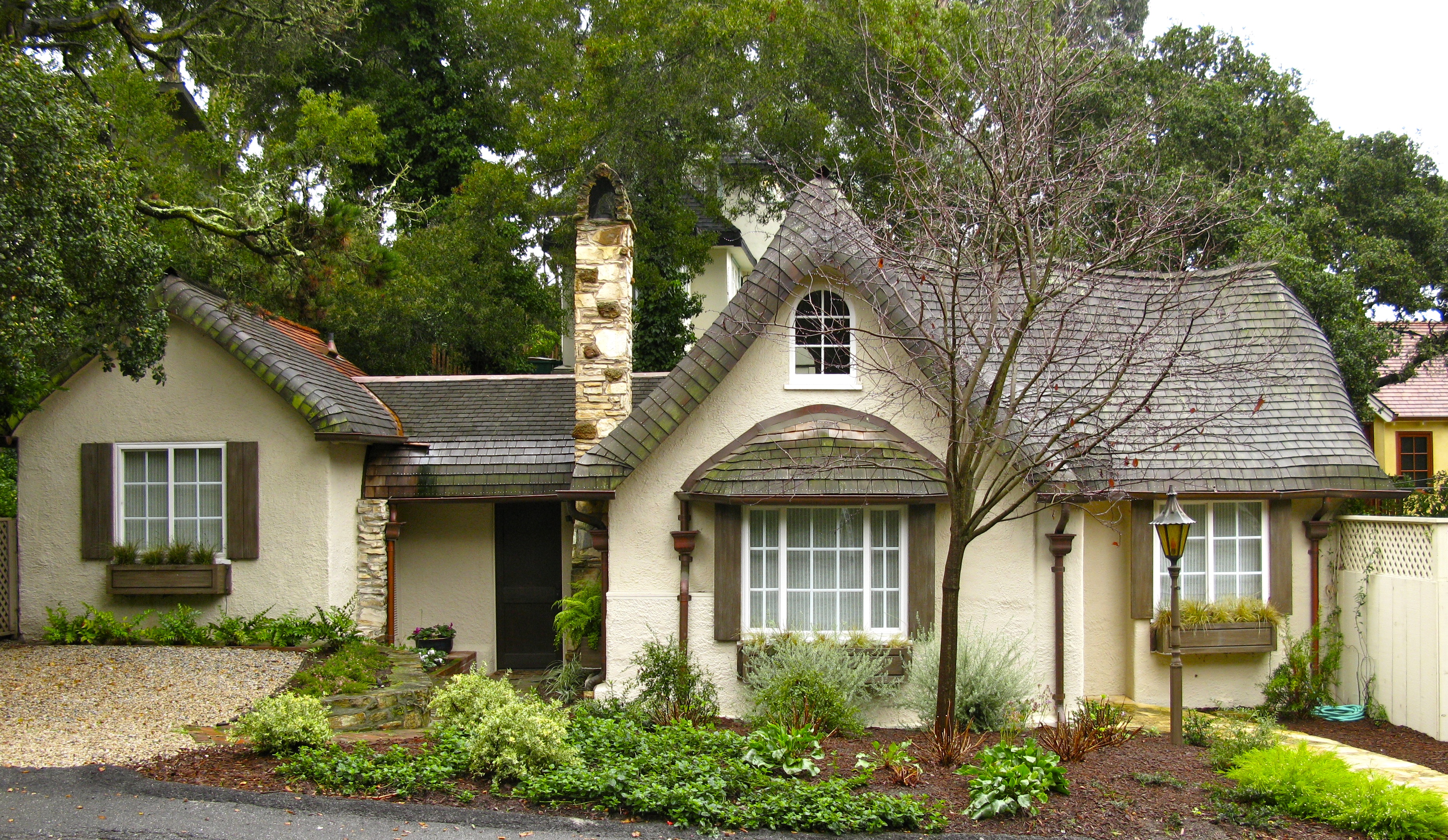 This cottage is now in the heart of Carmel, but at the time it was built it might have been the “cabin in the woods”.