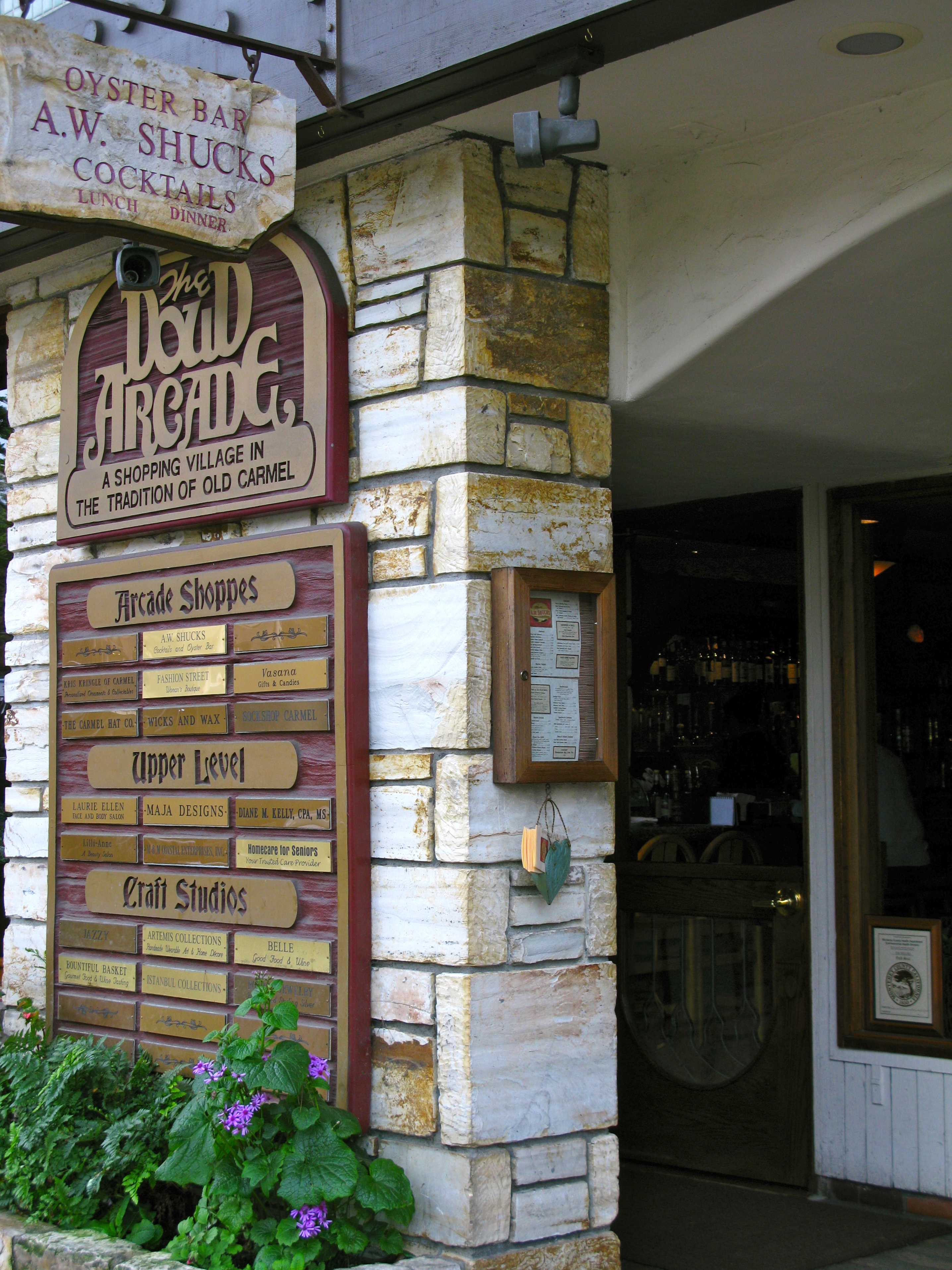 When Bill and I first come to Carmel, Doud Arcade is a home for local craftsmen with studios above and shops below.