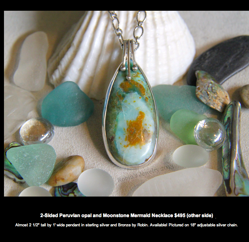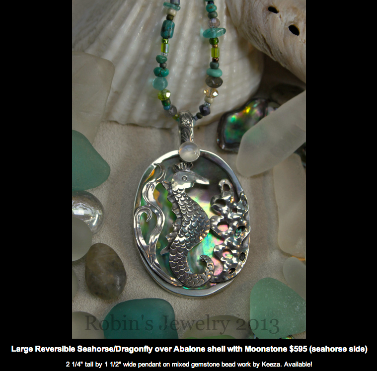 Robin, with the help of her apprentice Keeza Starr, creates a constant stream of beautiful jewelry using sterling silver, semi-precious gemstones, shells and other natural materials.