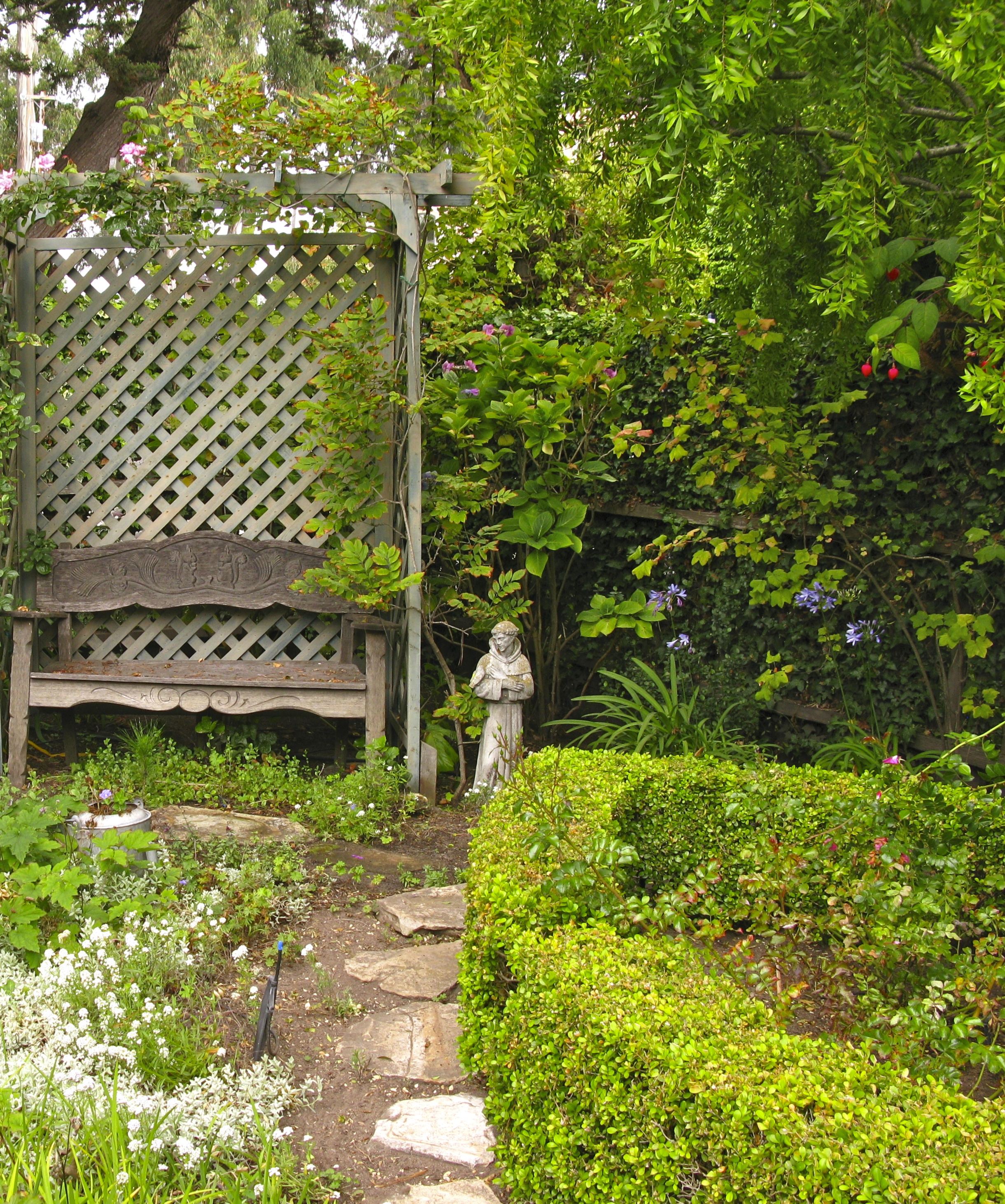 Small stepping-stones lead to a bench,