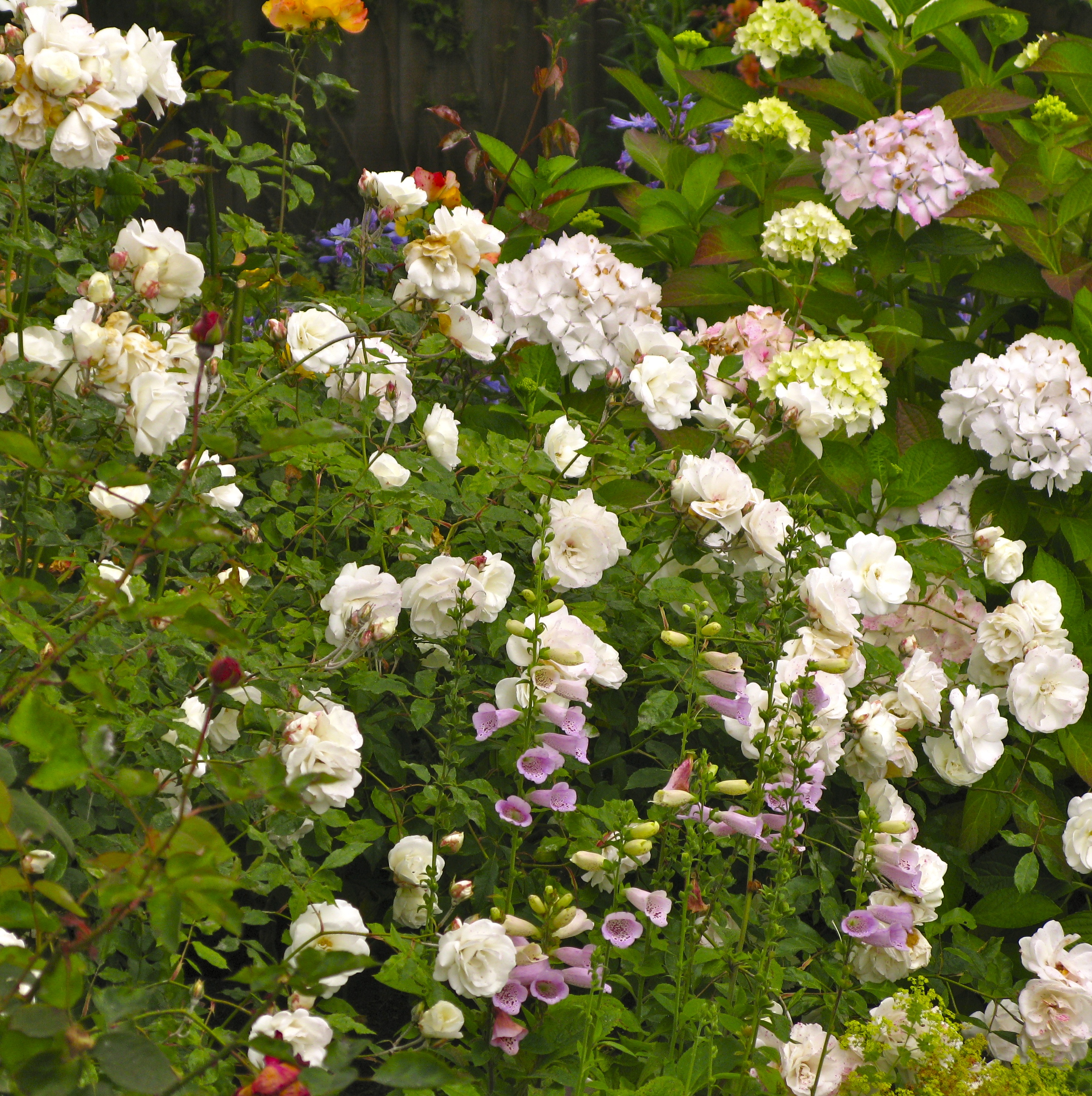 Even in the parking in front of the house, the Kelley’s have created a small bed of roses, hydrangea and foxglove blooming away.