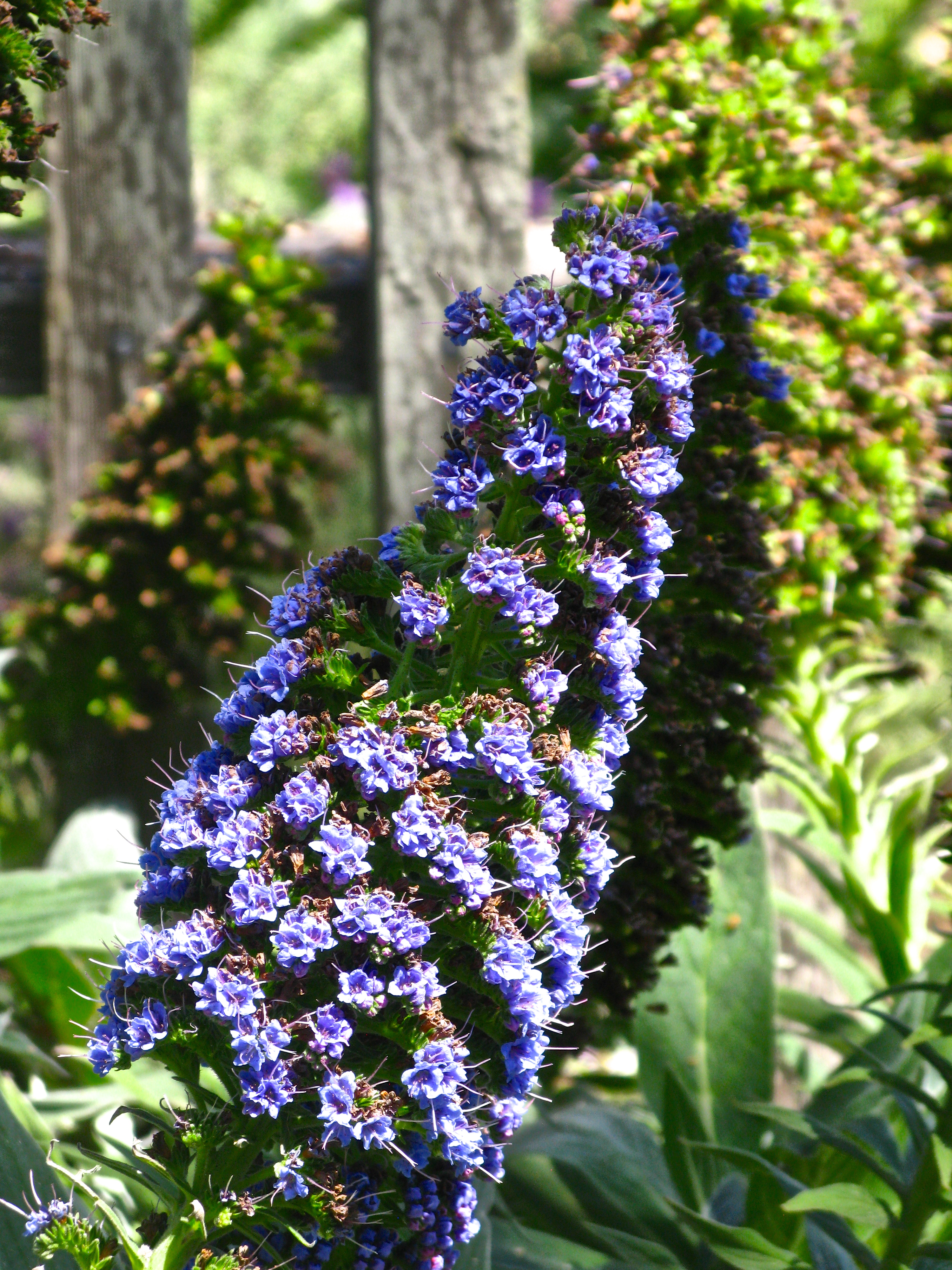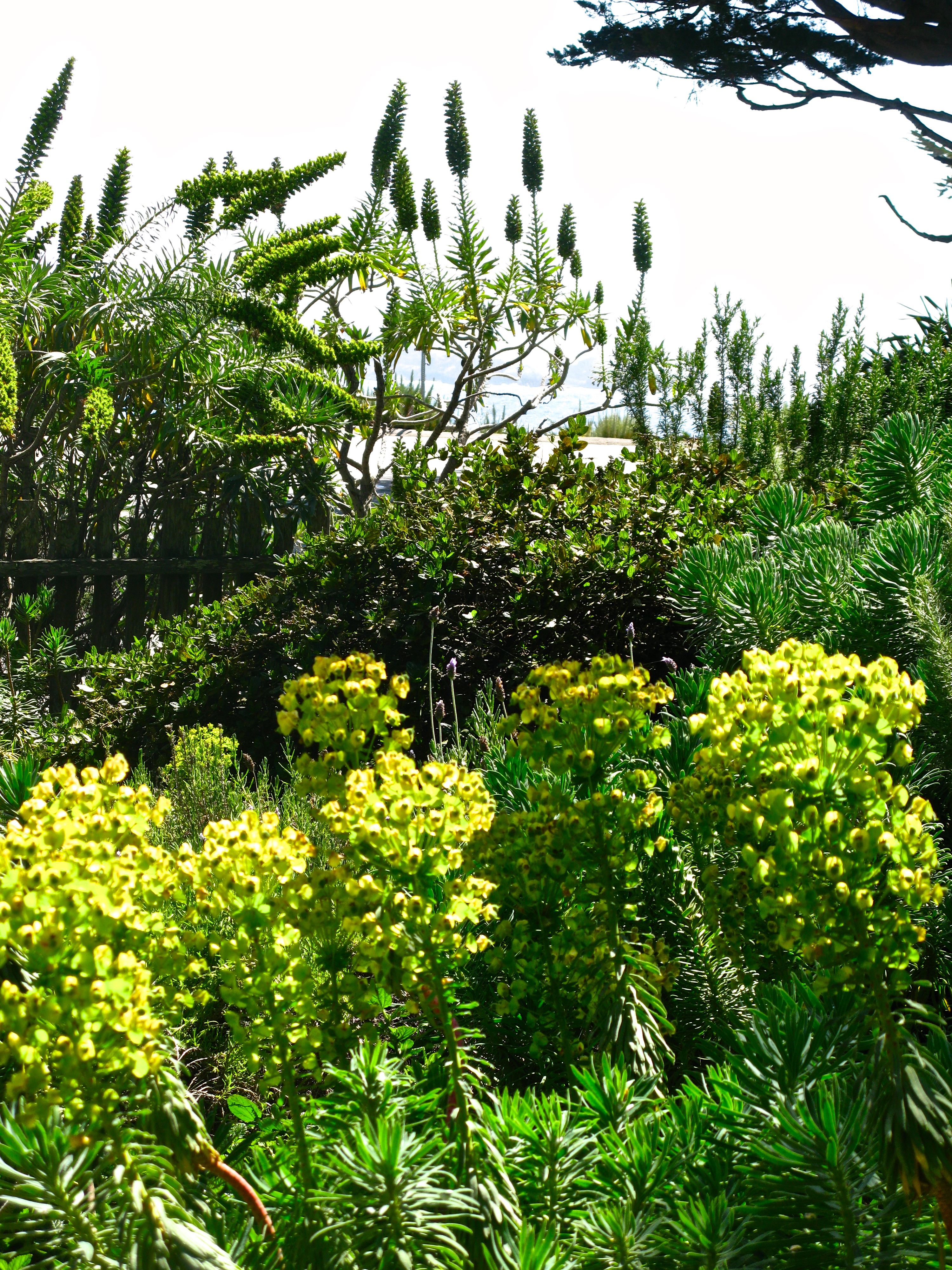 I am able to see the ocean over the Euphorbia and Echium candicans, commonly known as pride of Madeira.