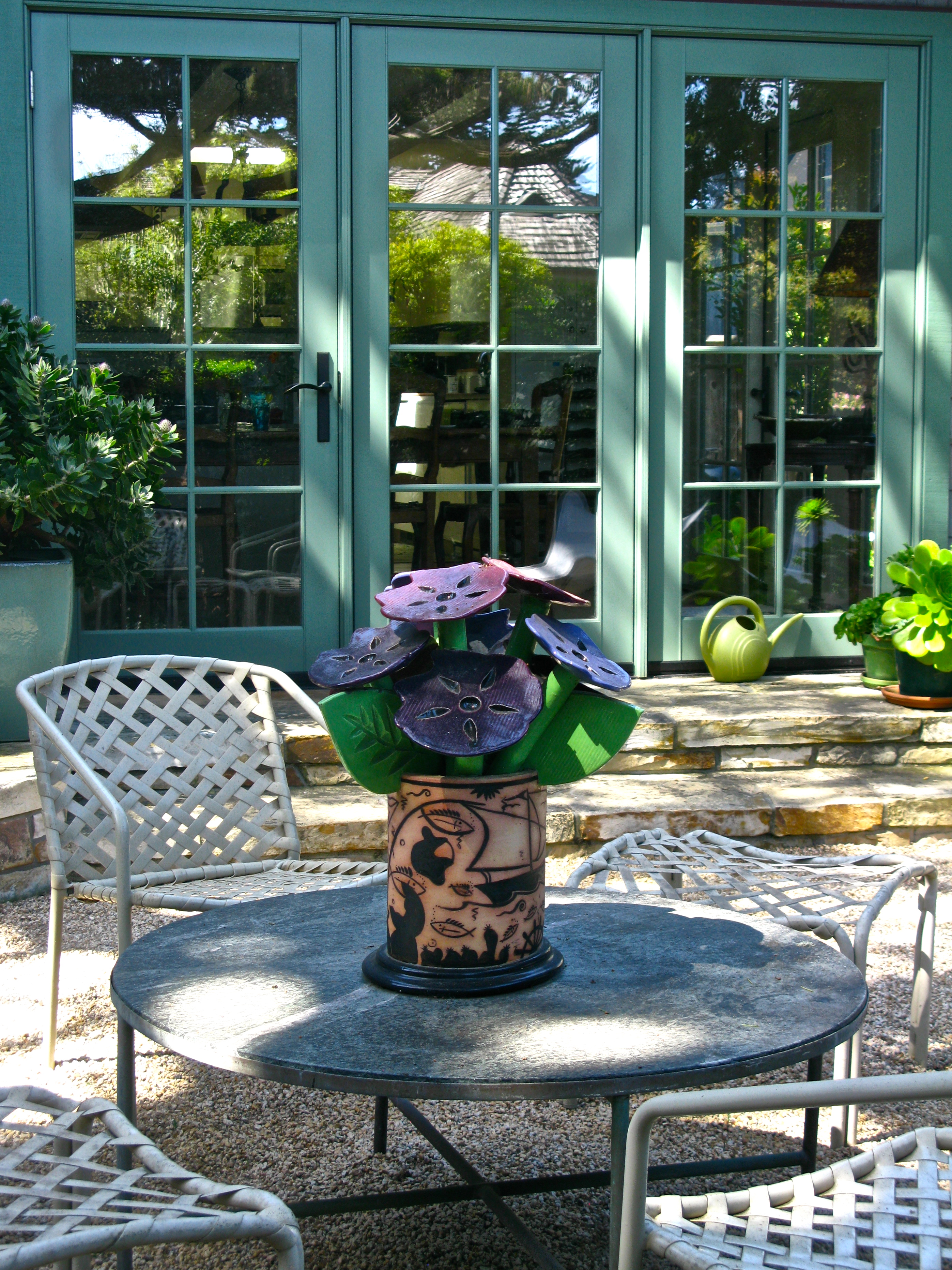 An amazing blog- and I had no idea Marcia had such an illustrious local history. One major item you left out is that she is an incredible watercolorist who attended my classes at Carmel Adult School for many years. She needed no instruction! You could do a whole piece on her beautiful work alone. Also, is the ceramic bouquet in the garden a Bo Kvenild piece? He’s a wonderful Santa Cruz artist as well. Thanks Linda! Jane Flury