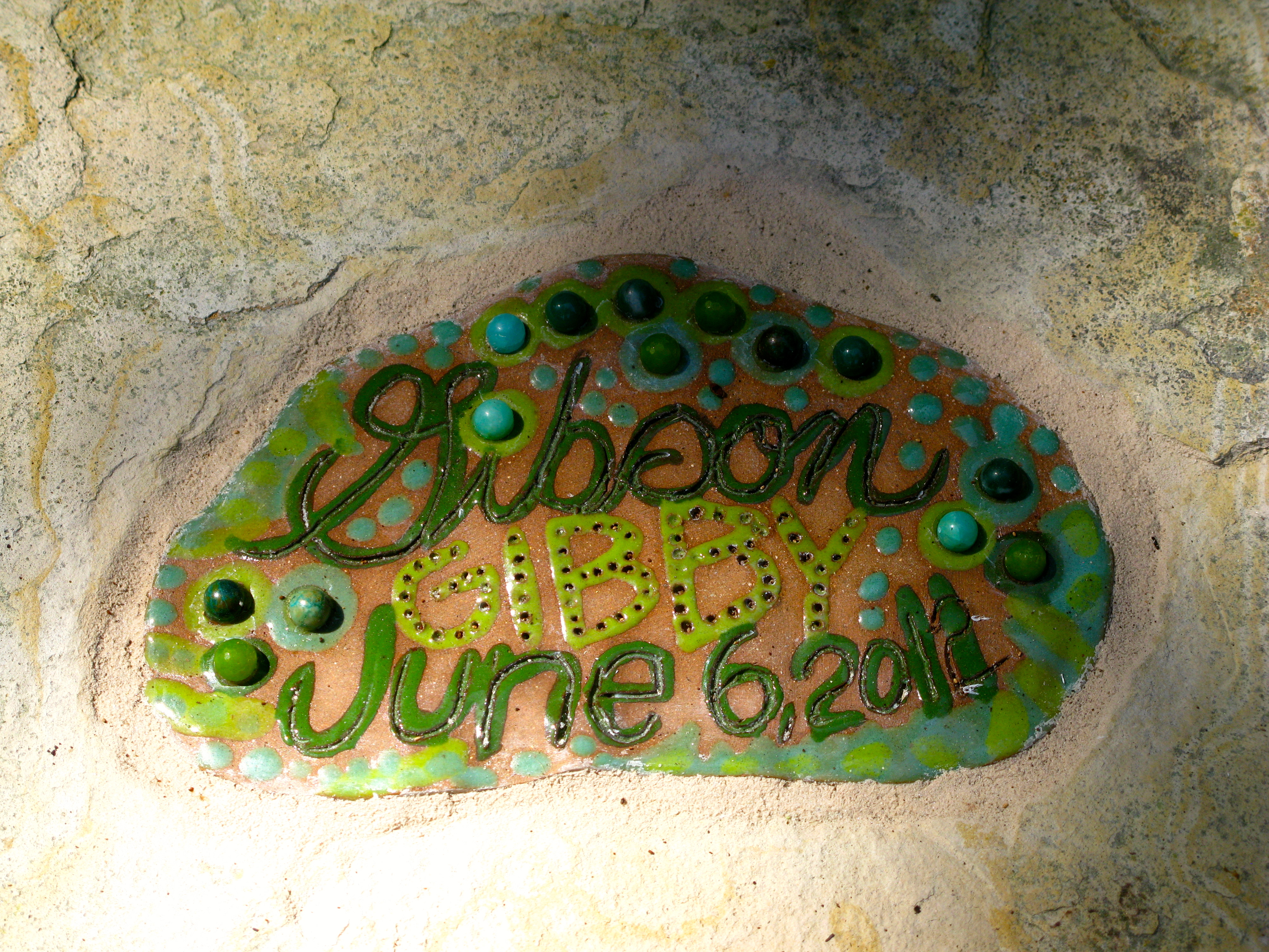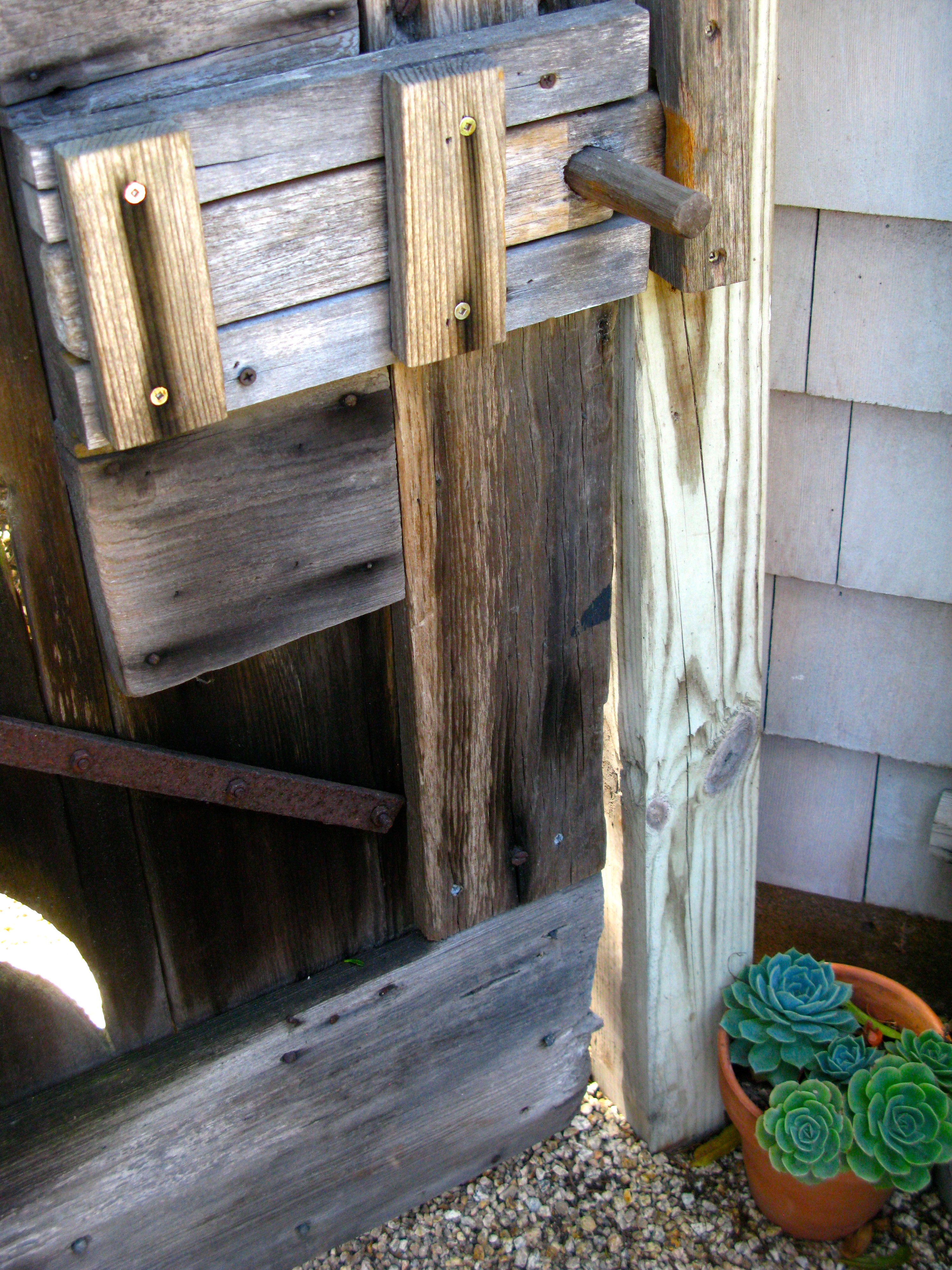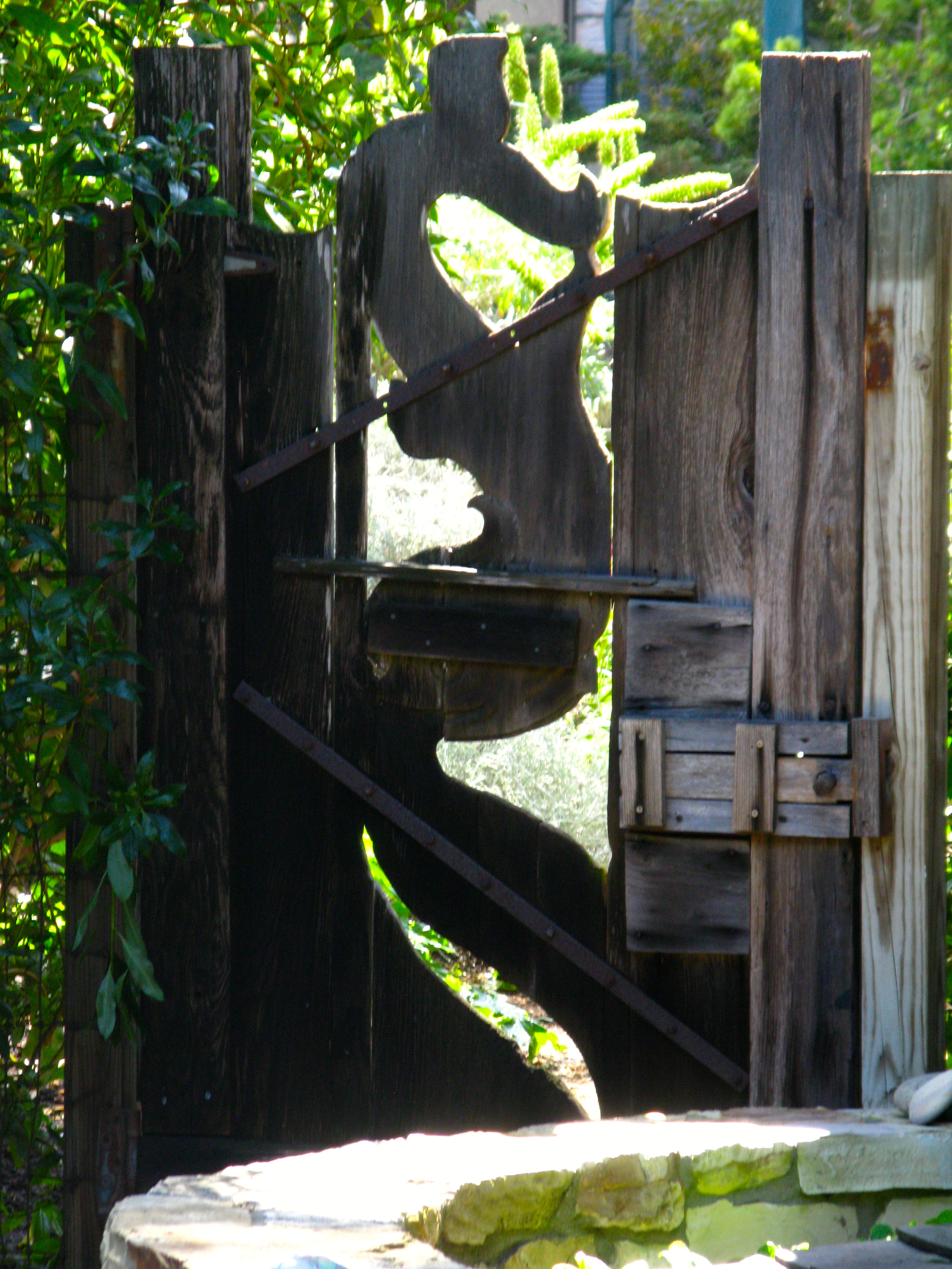 To my left is a uniquely carved gate. I think it looks like a child riding a porpoise.