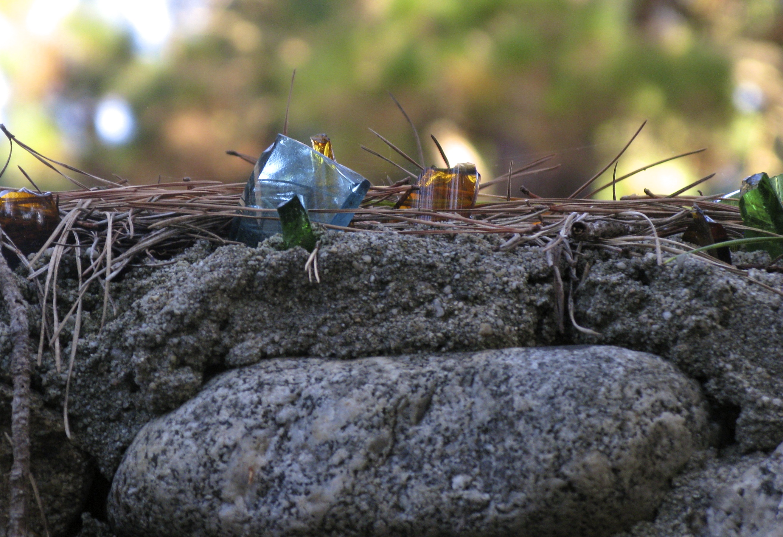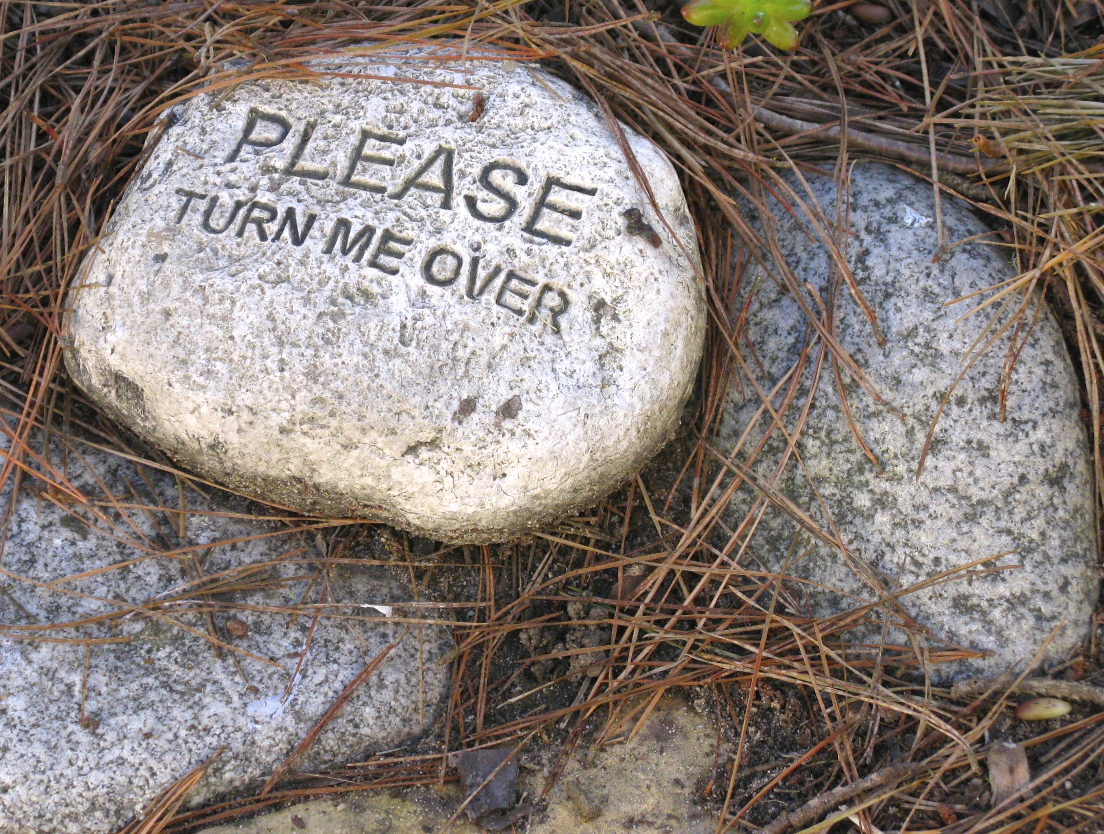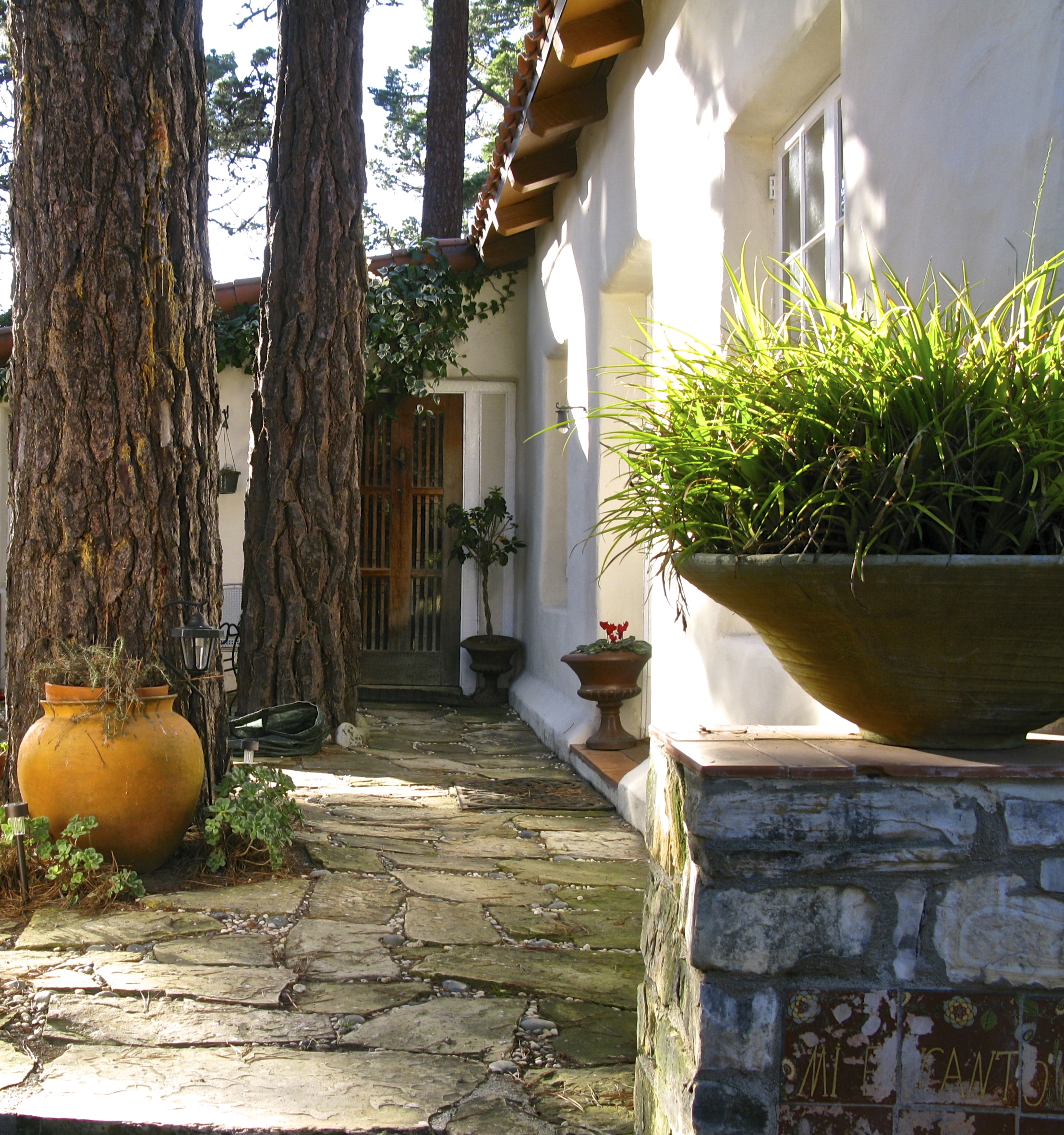 I approach the front door on the flagstone path. Note the colorful name tiles mortared into the stone.