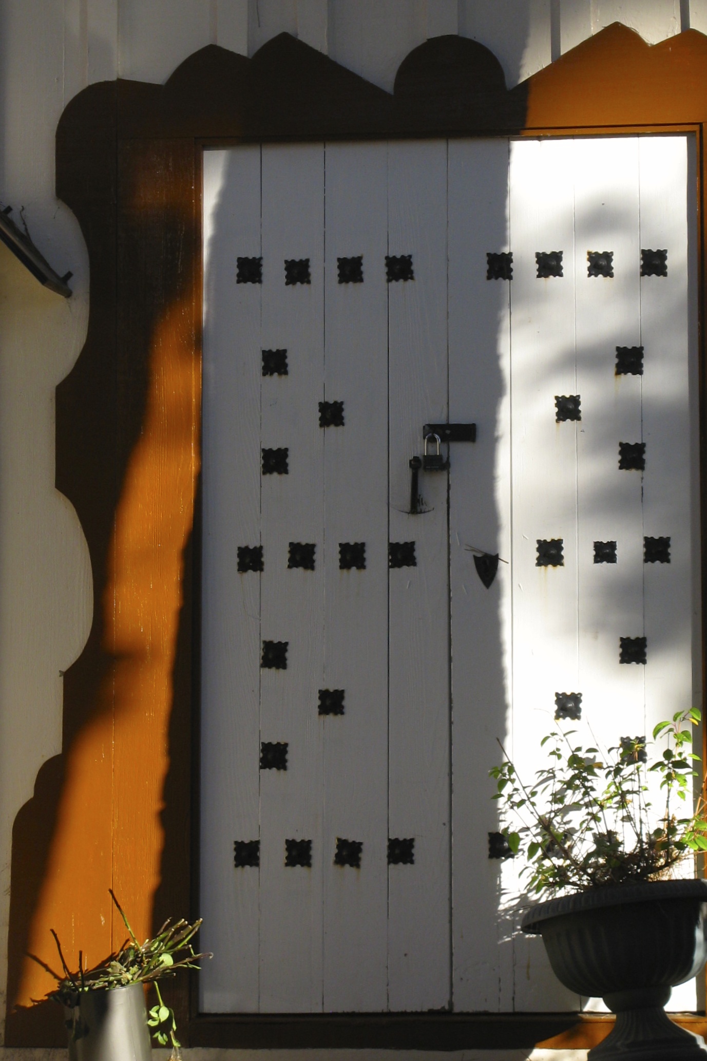 I round the corner and park on the north side of this “one-story, wood-framed California Adobe vernacular residence…The exterior wall cladding is a combination of textured cement stucco and vertical board-and-batten”. Kent Seavey
