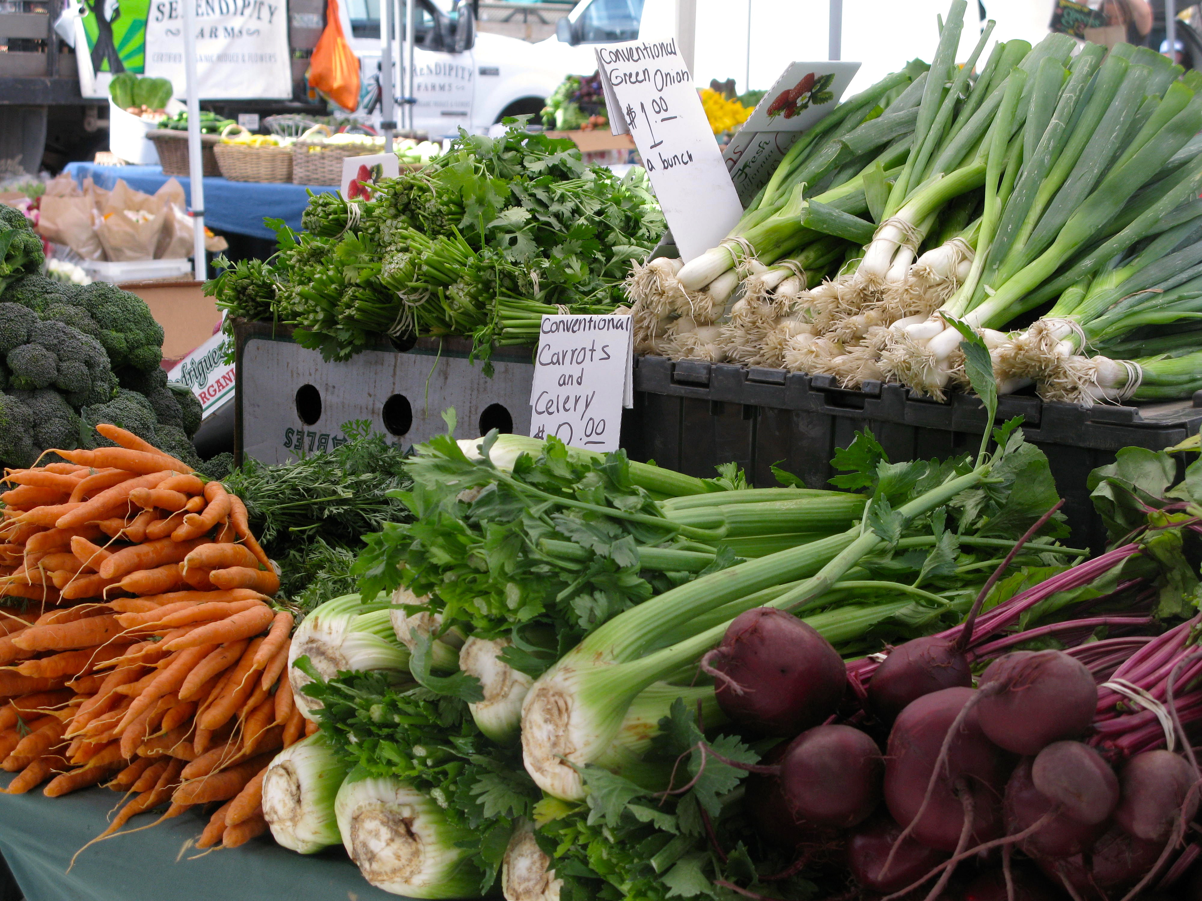 Serendipity Farms – Selling certified organic vegetables&flowers knows how to market for visual appeal.