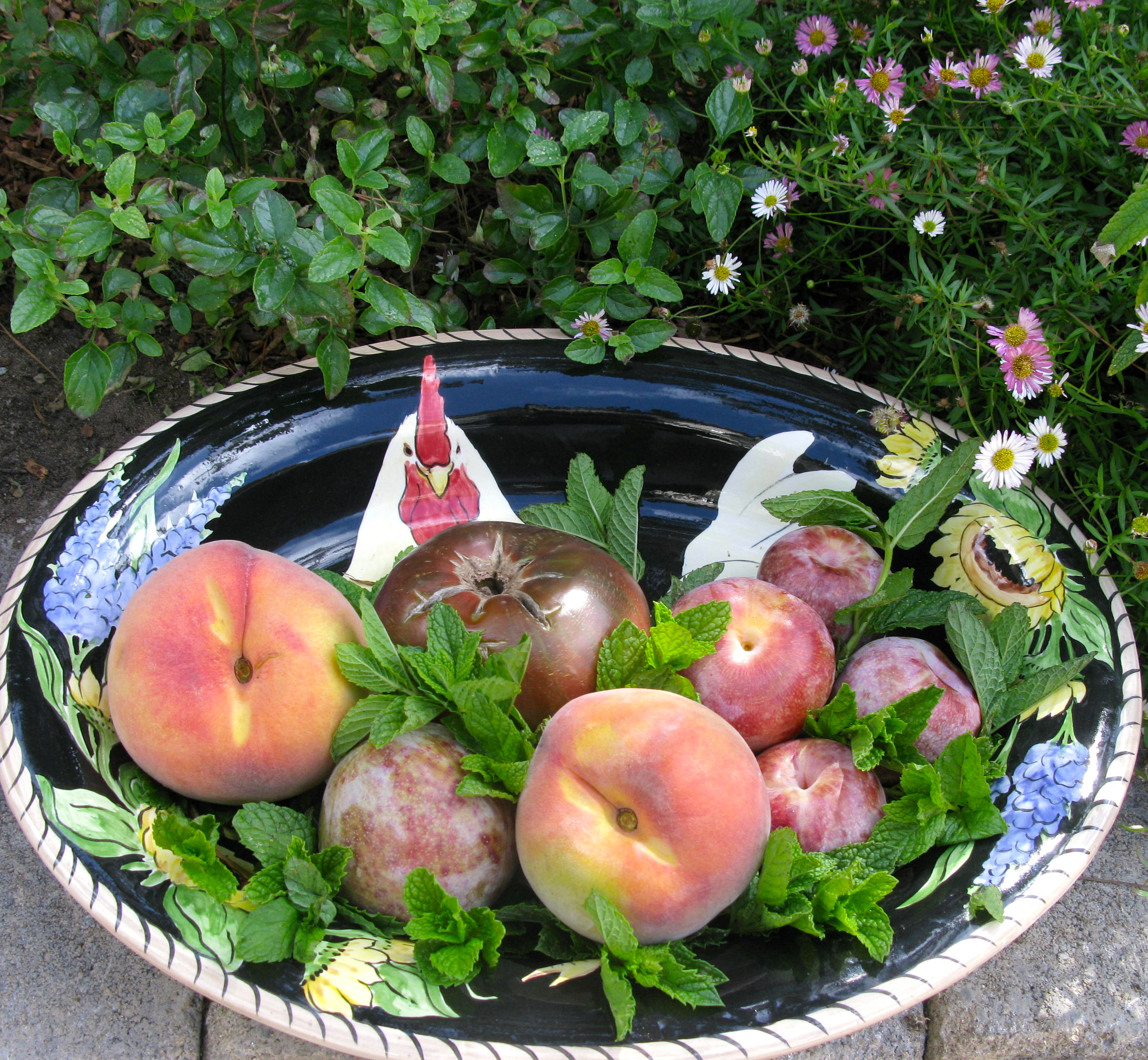 plums, crimson grapes and brown turkey figs.