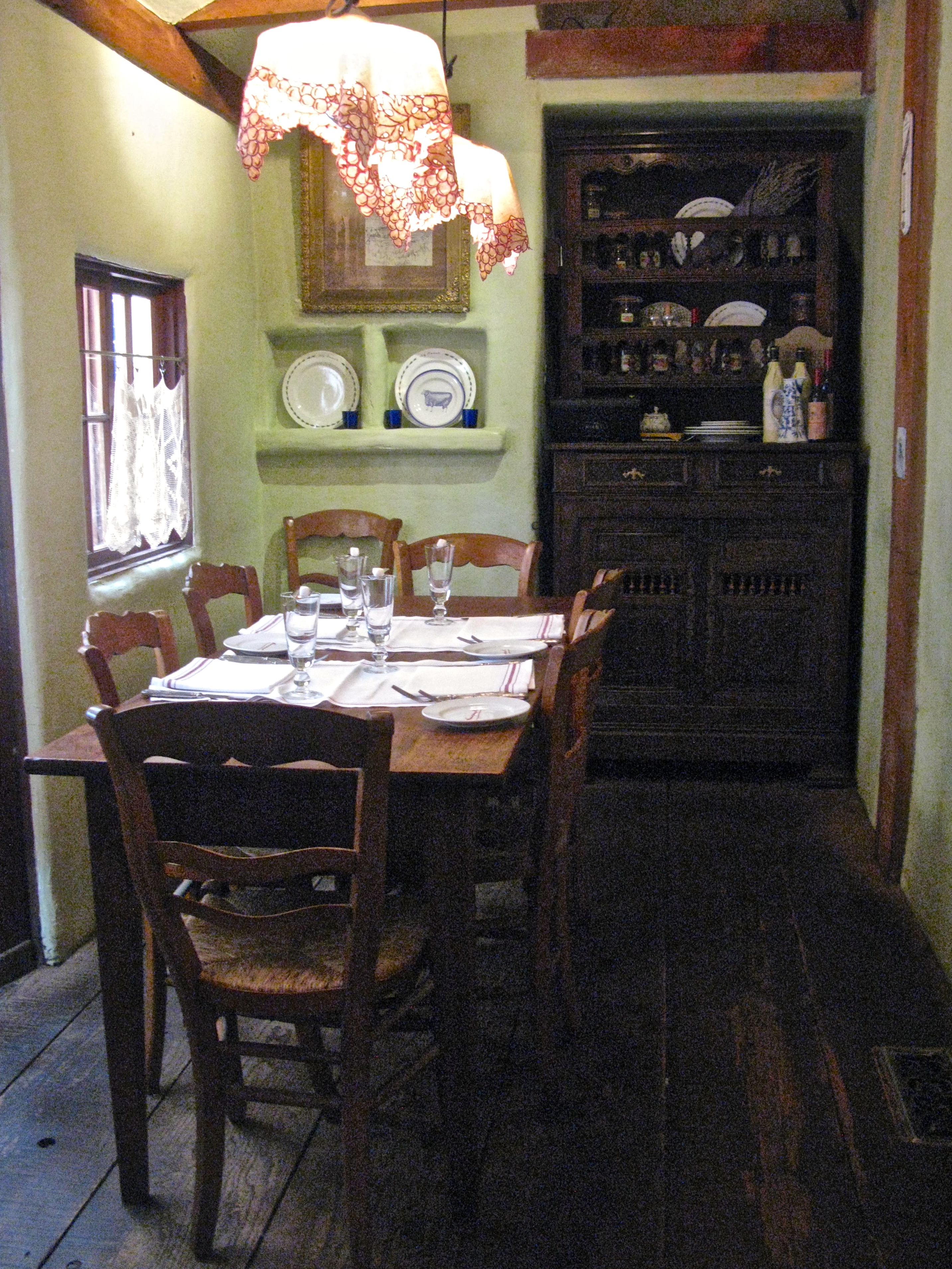 Next we are seated in the back room of la bicyclette,
