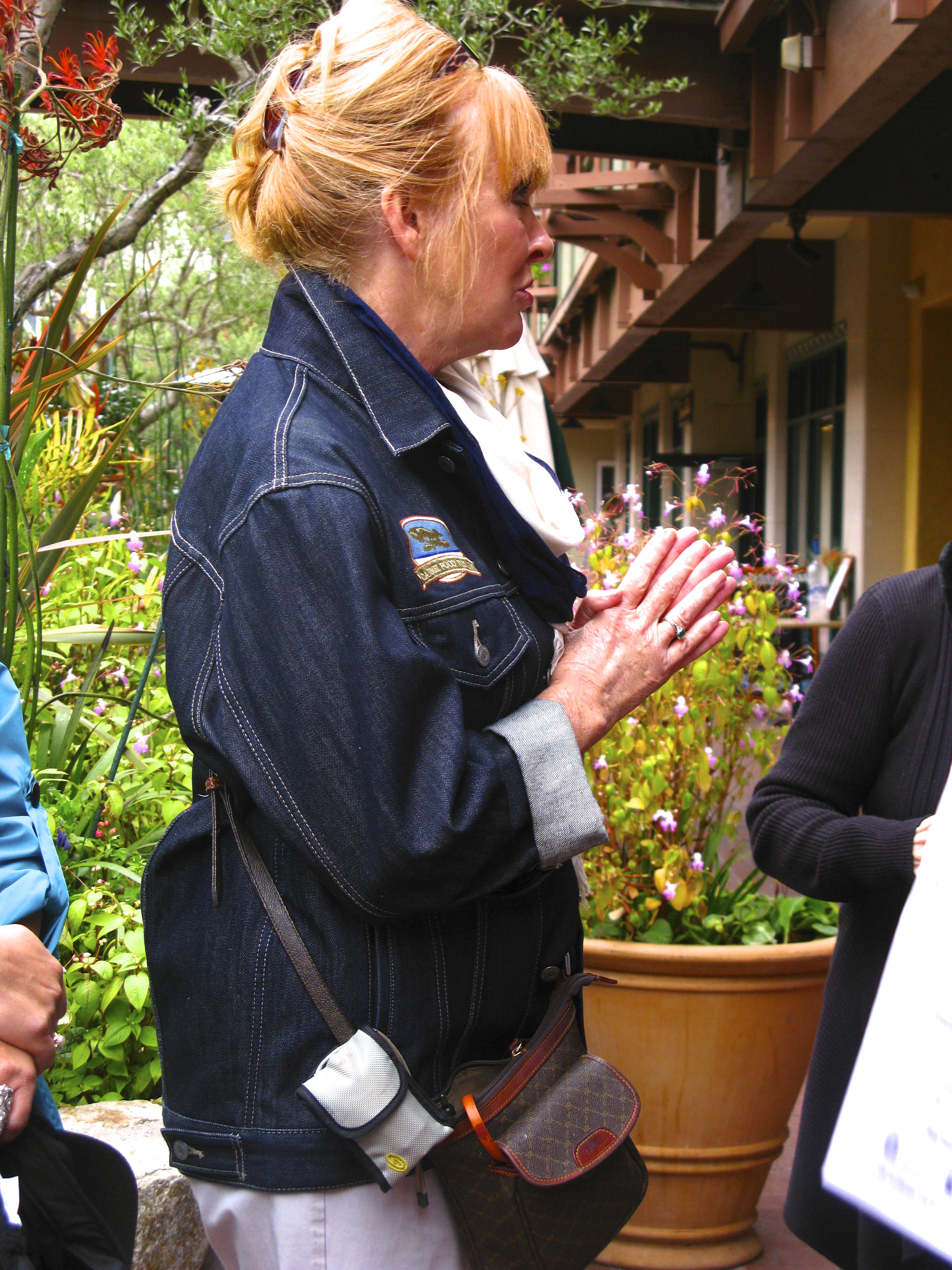 We  meet in the Courtyard of Carmel Plaza in front of the Cheese Shop, introduce ourselves and began.
