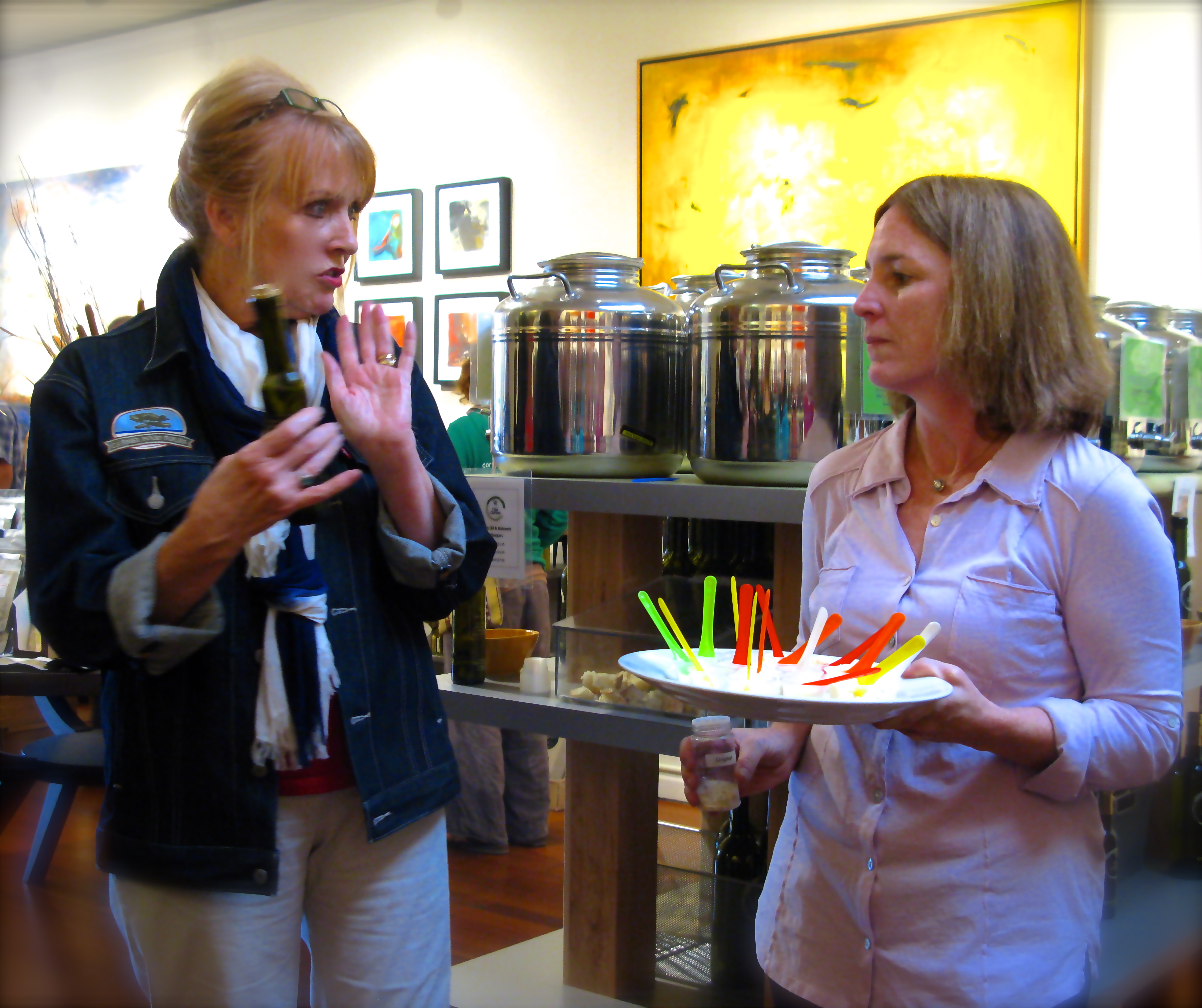 IMG_0230sampling vinegar such as  Pomegranate Dark Balsamic and Fig Dark Balsamic.