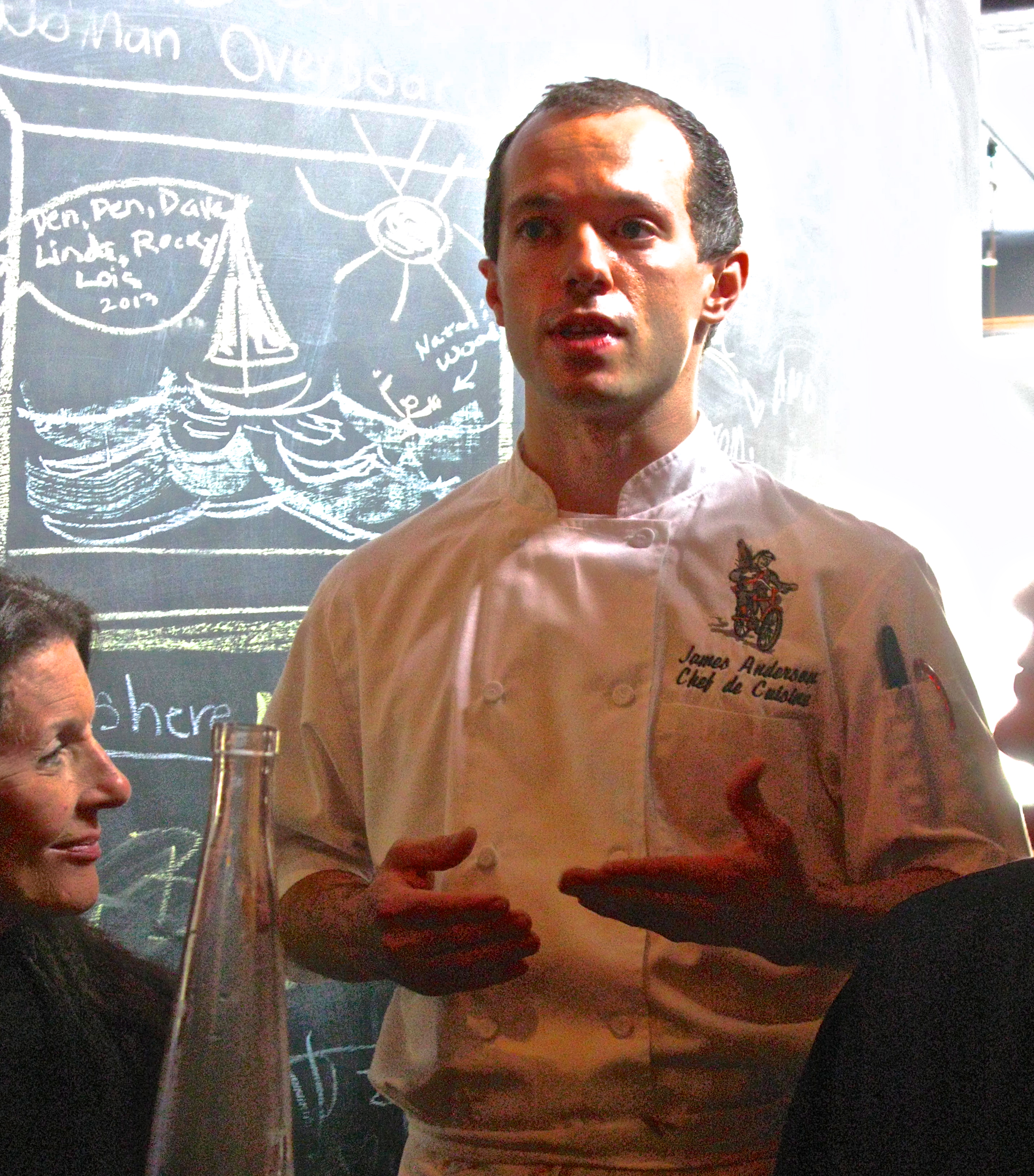 comes out to describe his passion for serving fresh, local and creative food. He has been cooking since he was 15 and is all of 27 now . He is unassuming and spontaneous. His name is chef James. Click on the link below to see him in action.