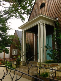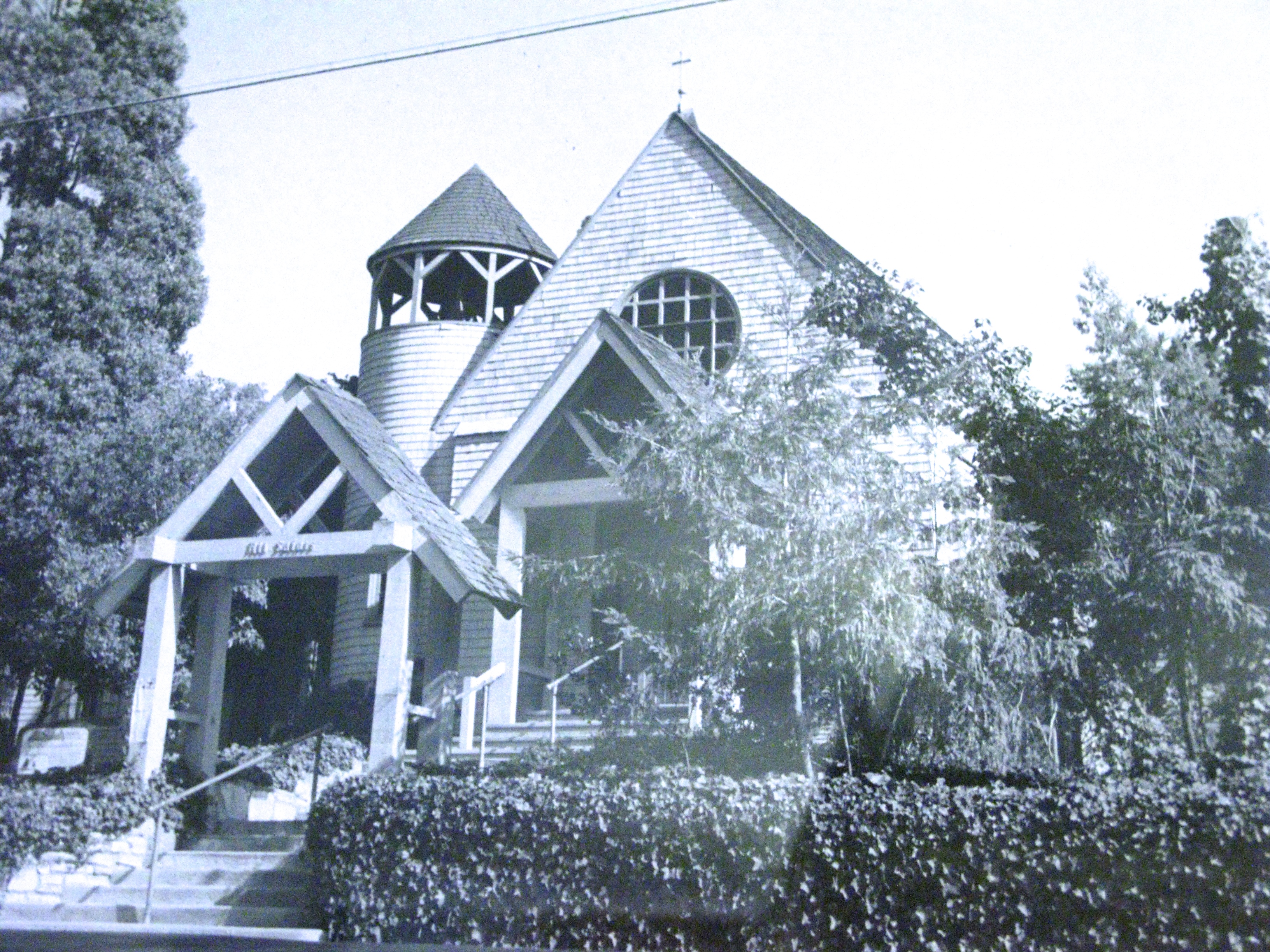 In 1946, the city council accepted an offer by All Saints Church to buy the church, rectory, parish hall and 2 vacant lots for a permanent city hall. No changes were made until 1953, when architect George Wilcox reworked the building. Other additions were added later resulting in this “dignified shingled complex of steeply-pitched projecting bays”- Kent Seavey.