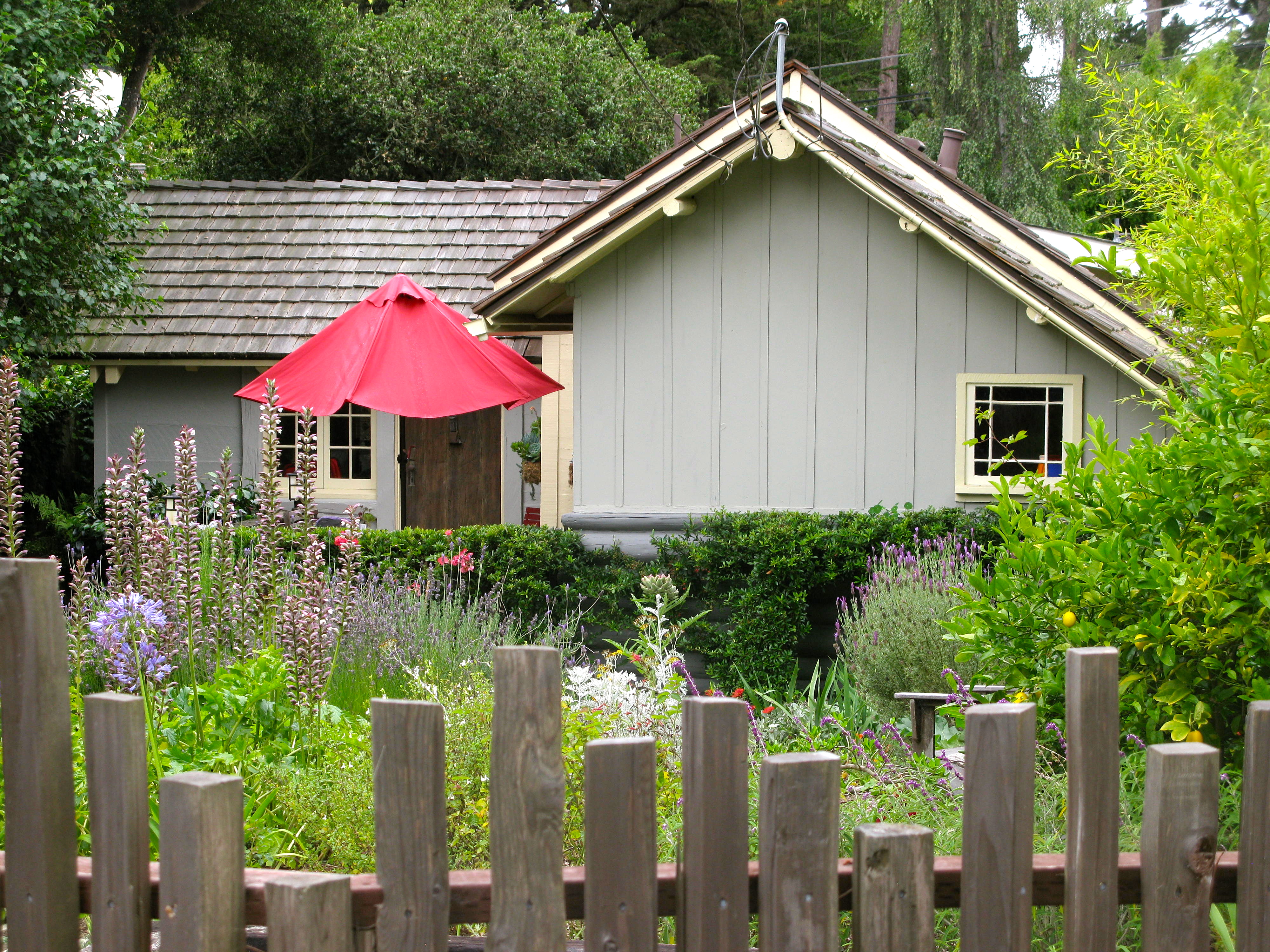 Once again your wonderful eye captures Carmel gardens and cottages perfectly. I look forward to getting together for our Bicyclette breakfast next time you are in town.