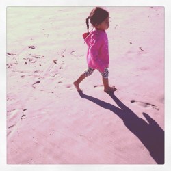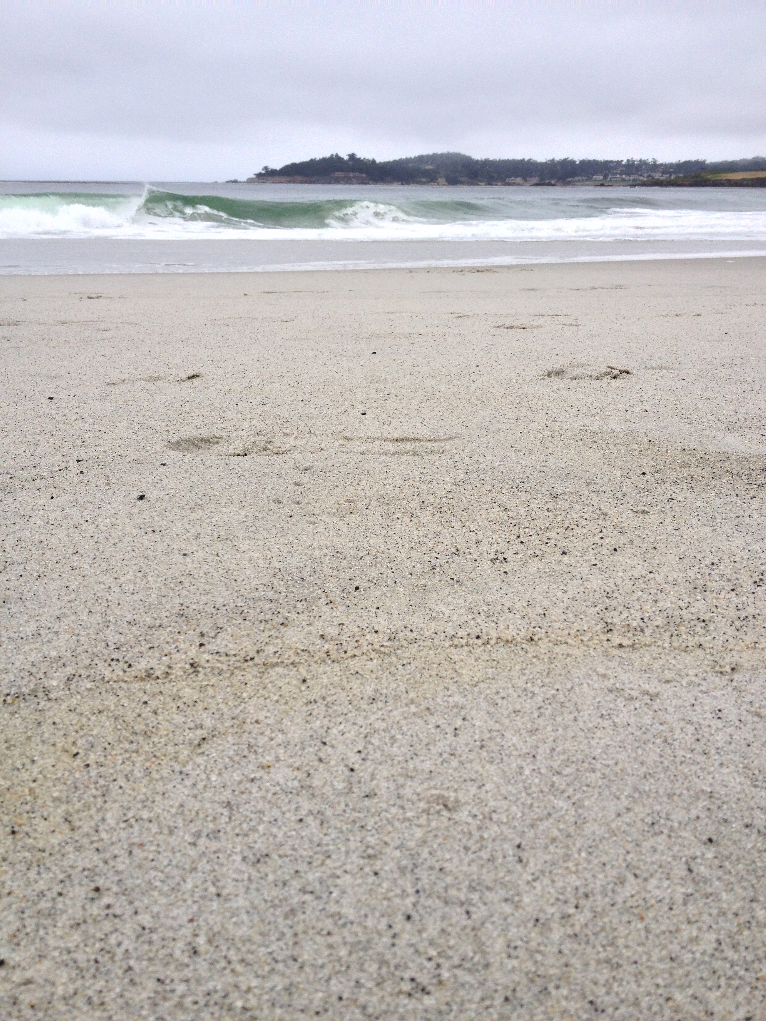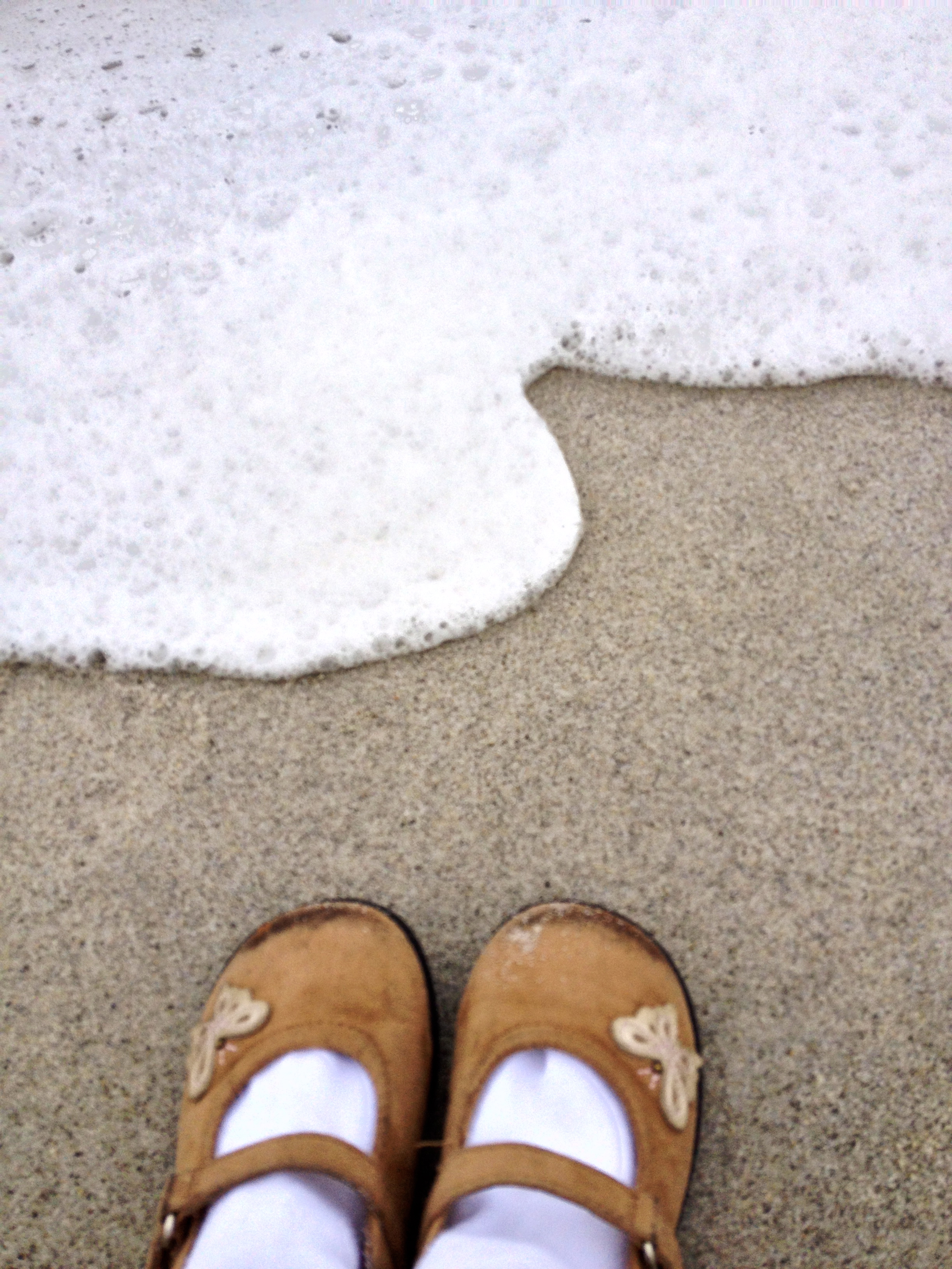 We go down to stick our toes in the foaming surf and are almost swept away. The water feels fresh and cold.