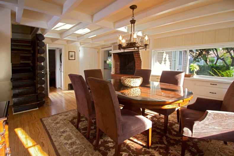 Formal Dining room. Look at the stairs and coffered beam ceiling