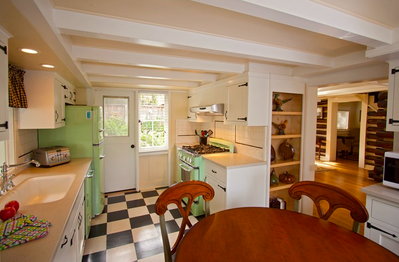 and I love the checkerboard tile. I had that tile in my first little cape cod kitchen along with pink cabinets!