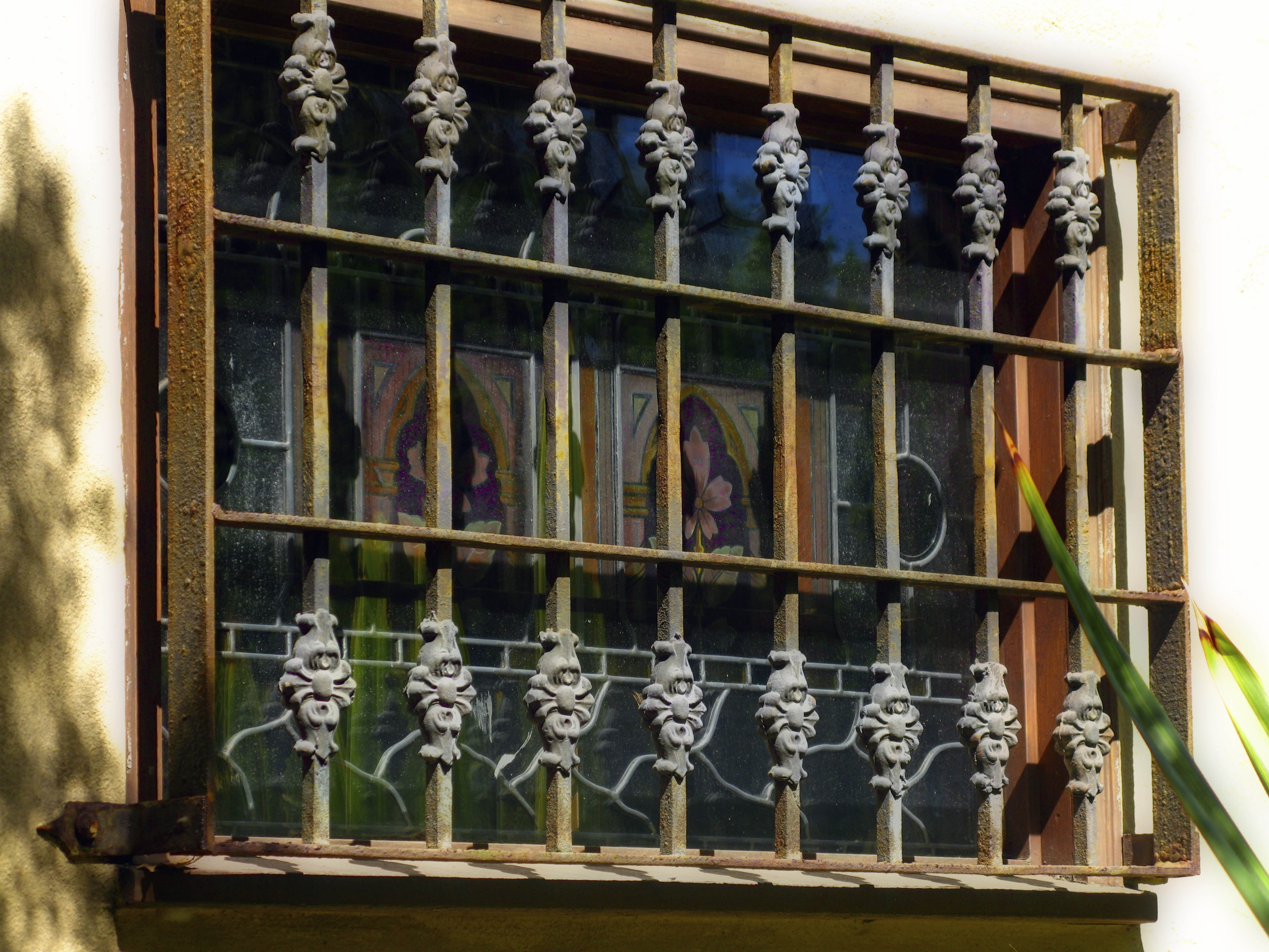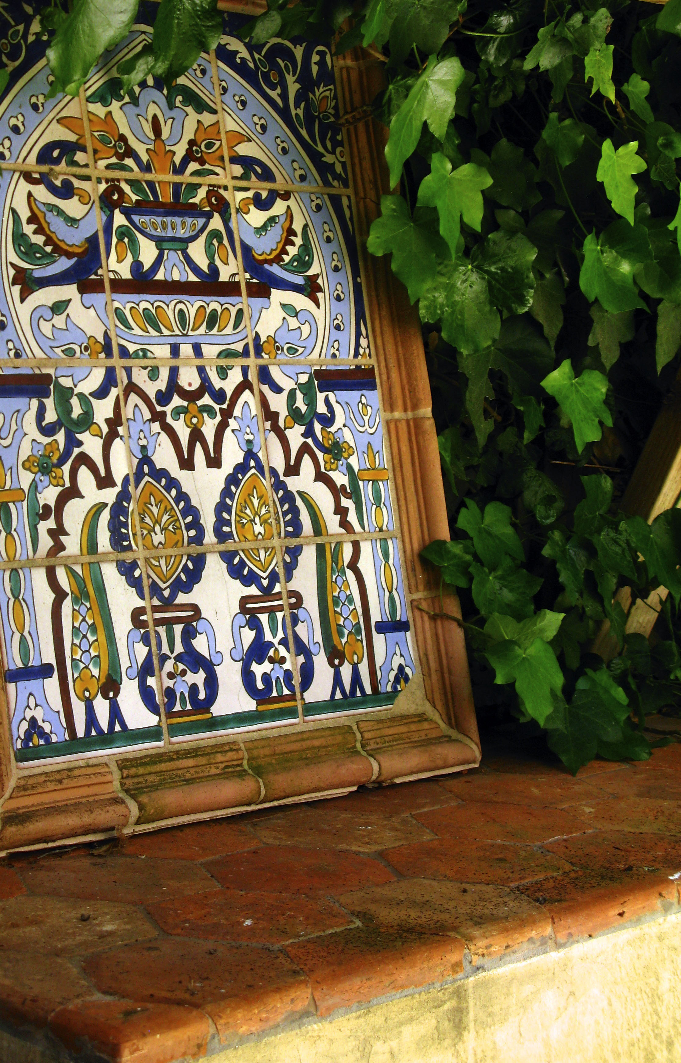Kent Seavey notes the flat roof seen over the door is associated with the Moorish influenced design of North Africa and is quite unusual in residential design.