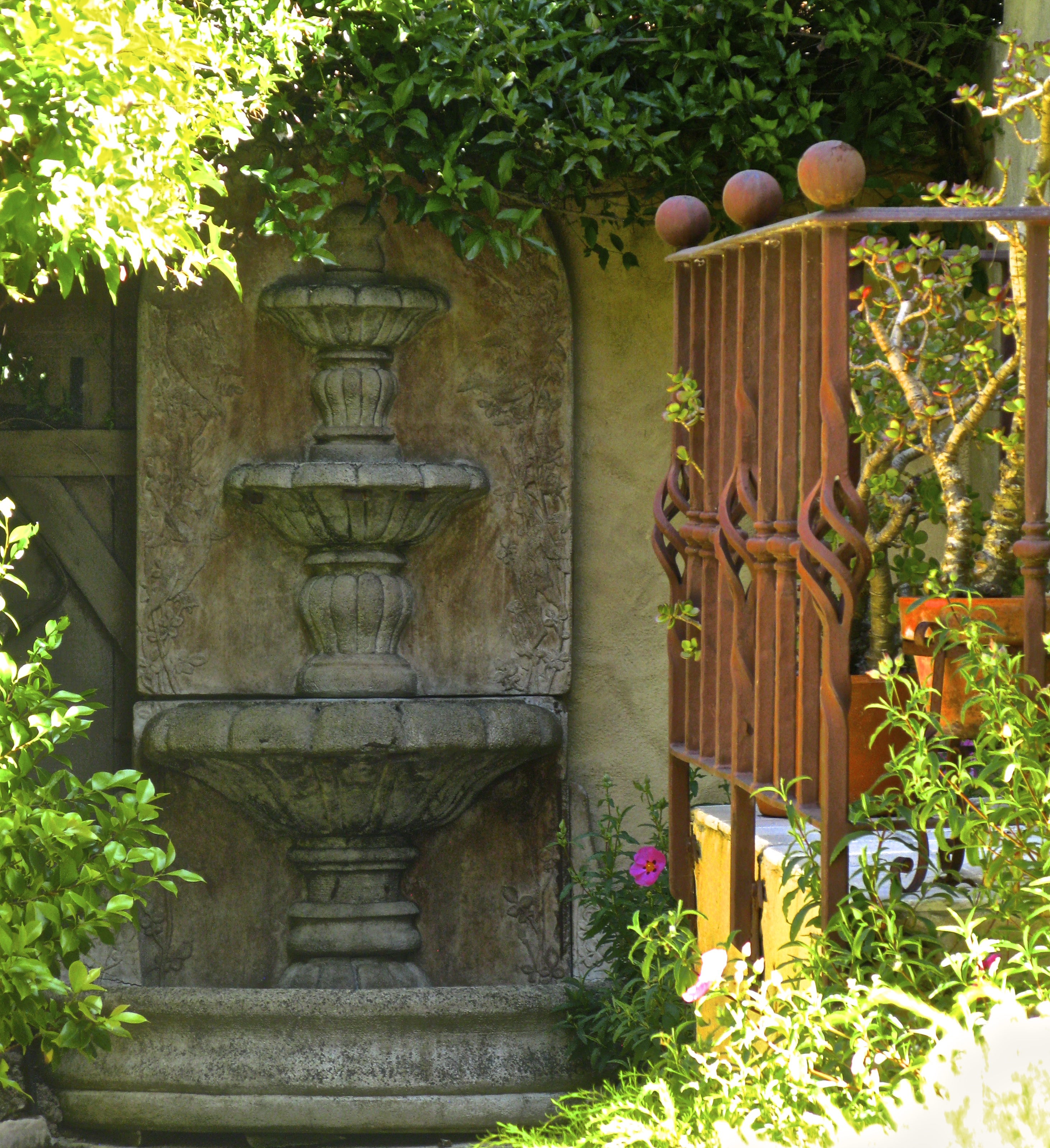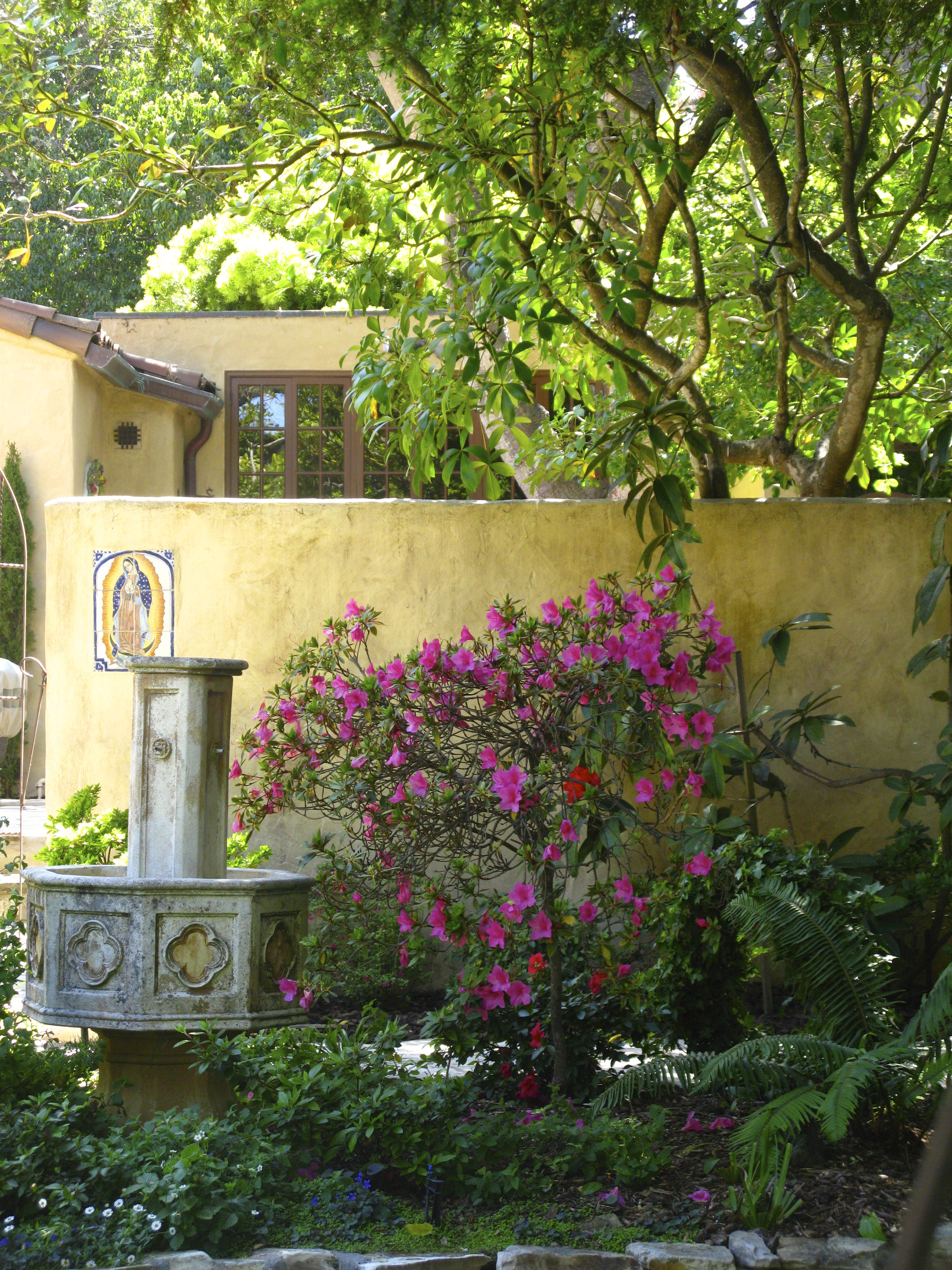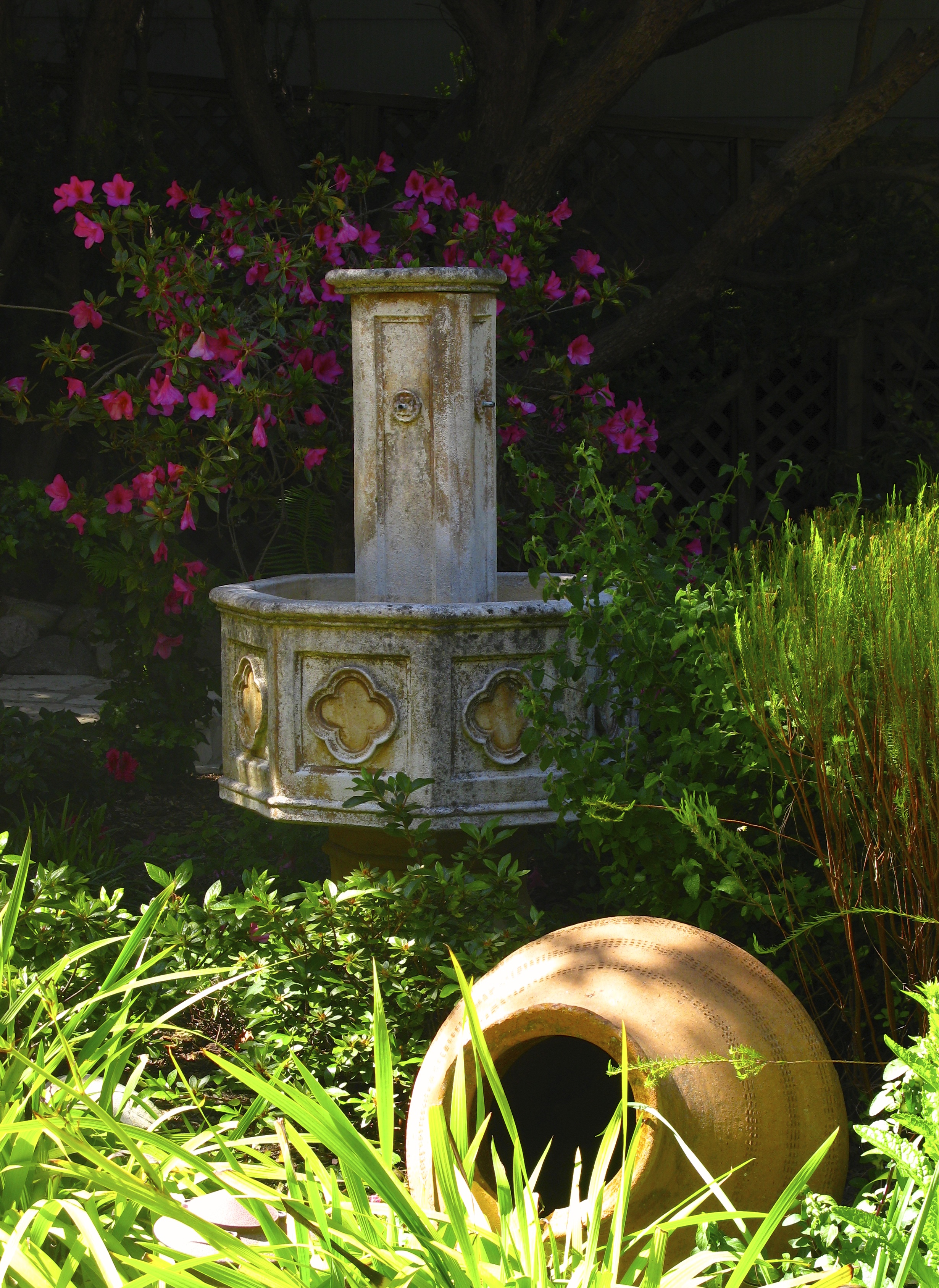 We redesigned the space over the years adding a fountain with its inviting sounds. The birds are constantly bathing here.
