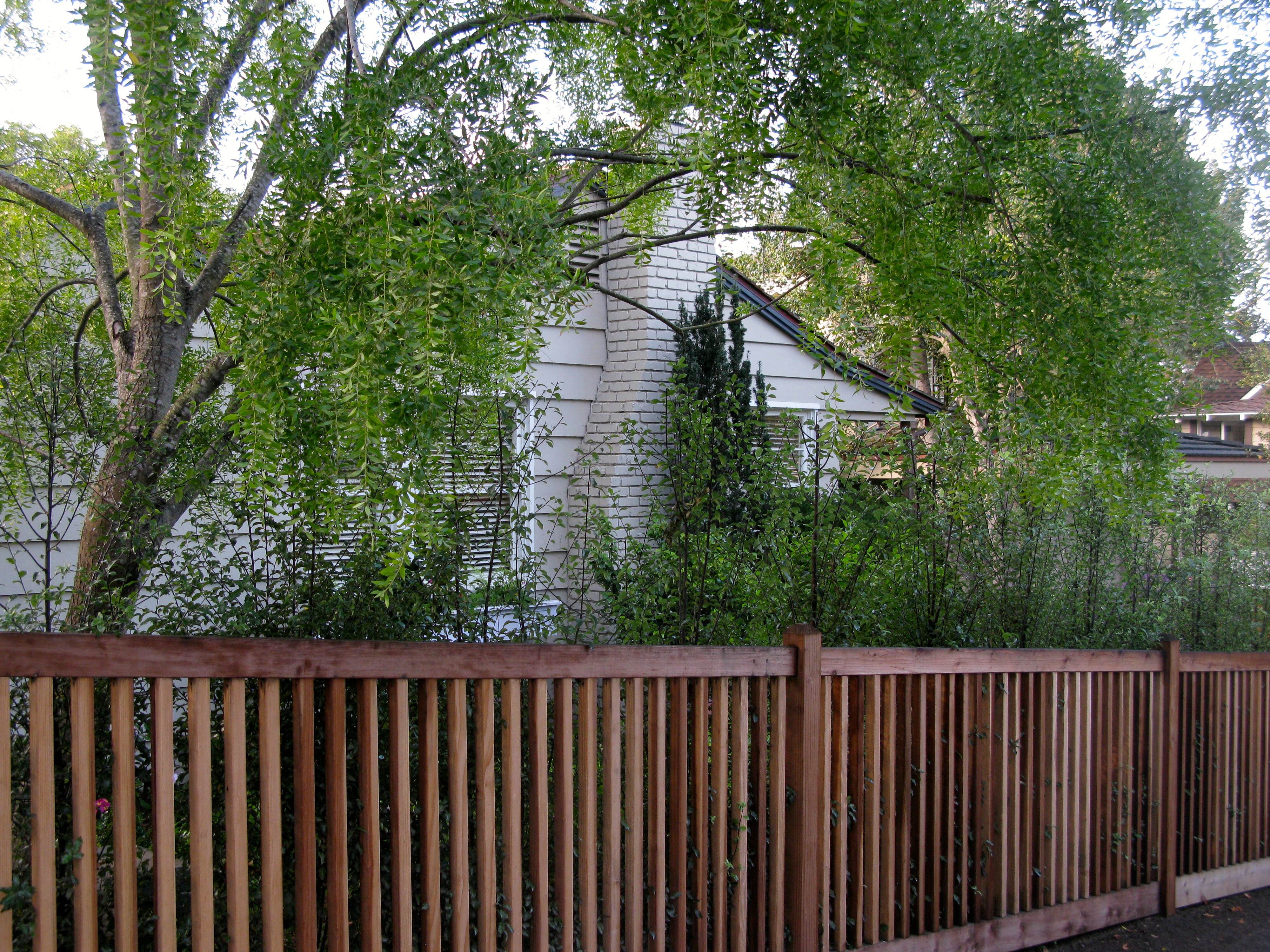 This is the front before. The fence and gate were rickety even then but ivy covered it and we lived with it until May 2013.