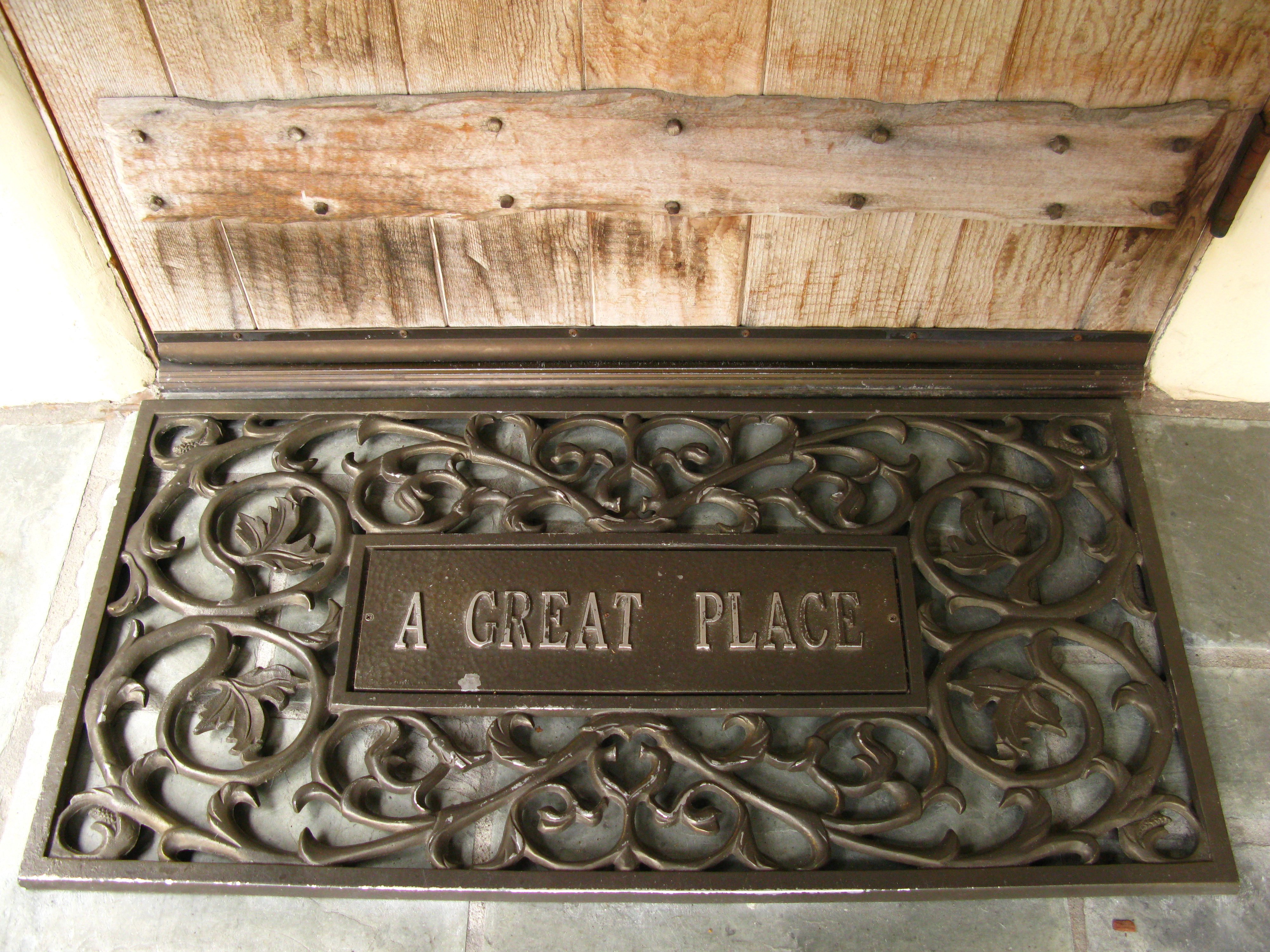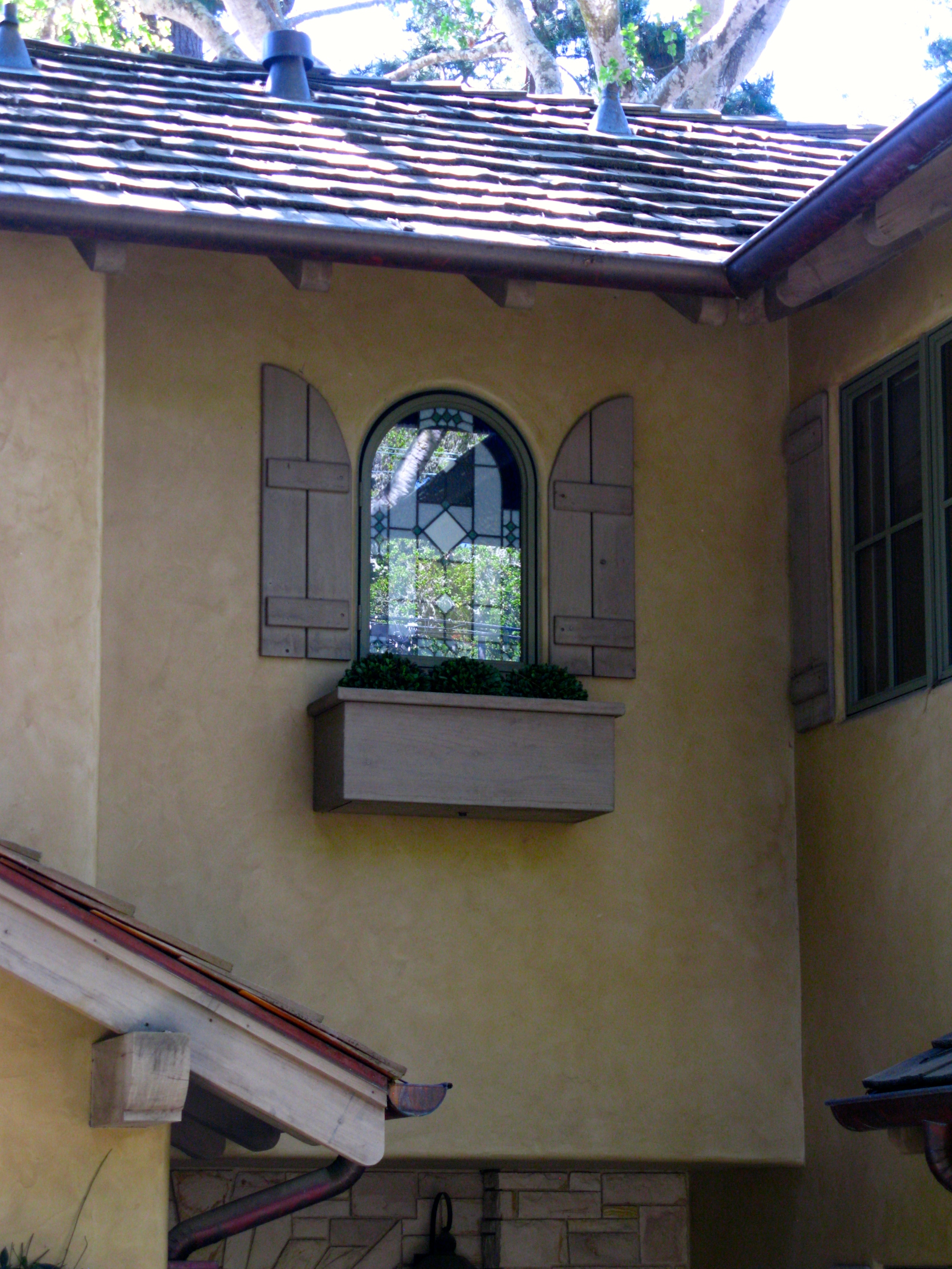The landscaping and the stained glass window always catch my eye.