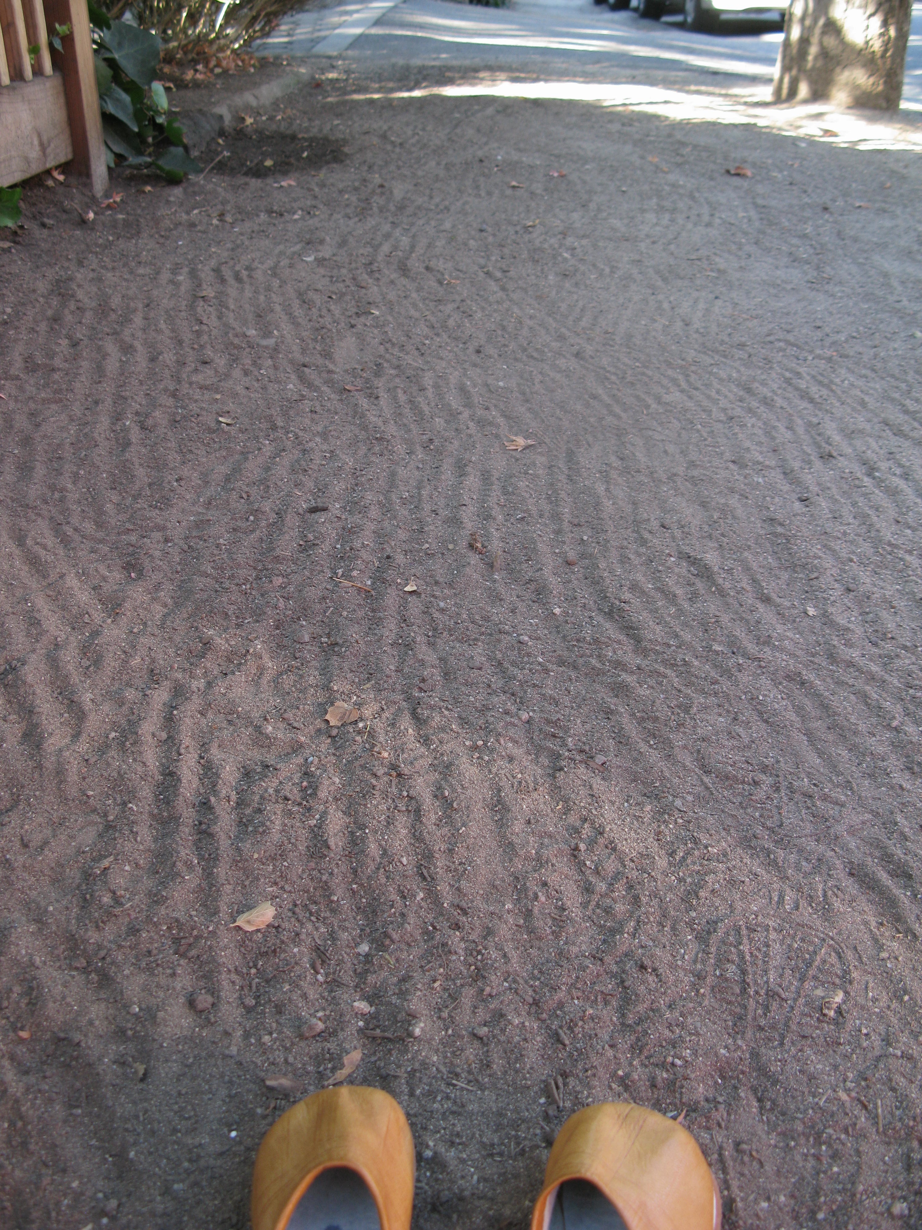 Streets accommodate trees and drainage by sloping to gutters and bumping over tree roots. Once easy to negotiate, it can now be tricky.