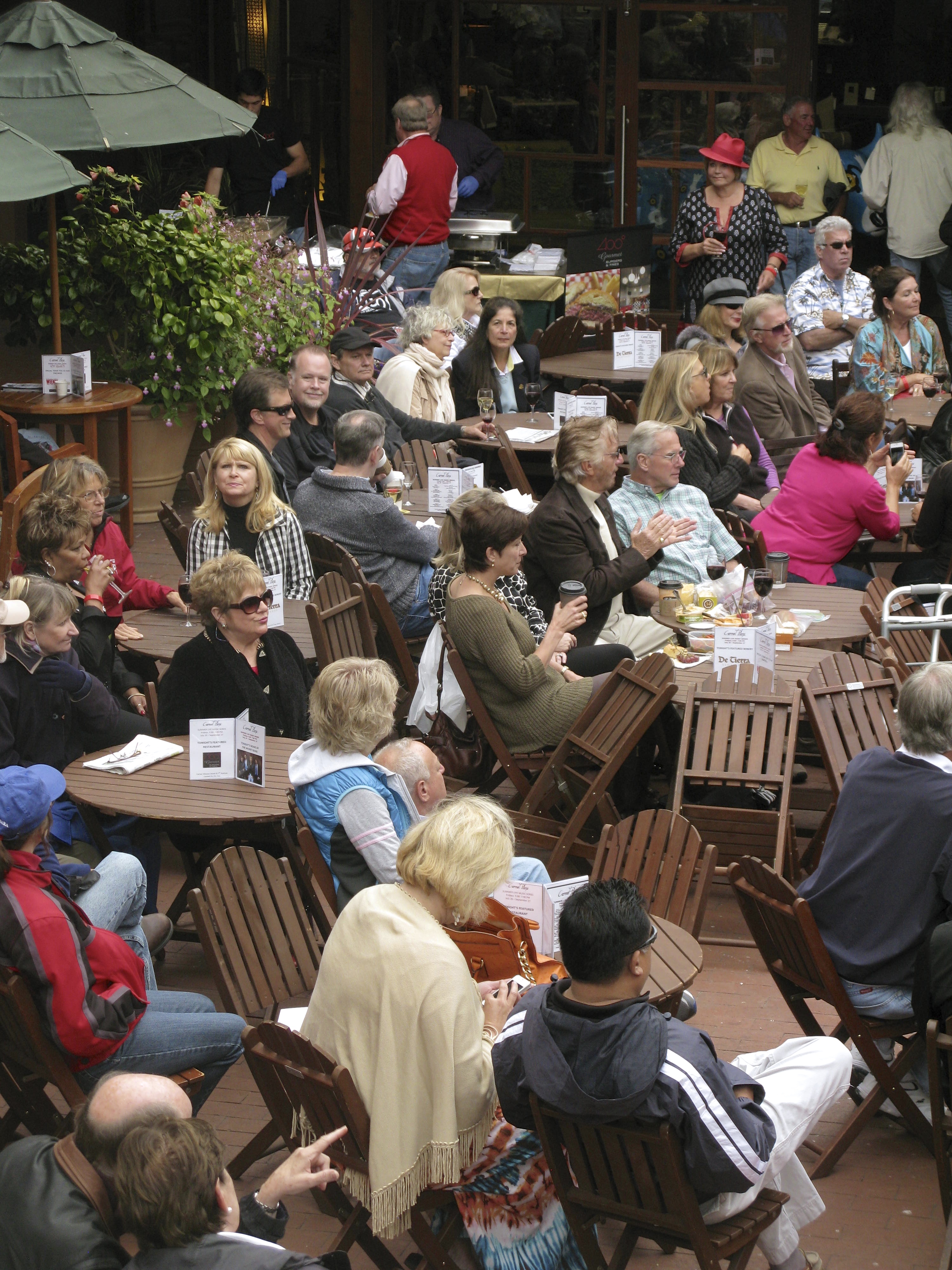 Carmel Plaza sponsors art exhibits, and a wonderful music series, I see neighbors holding seats for friends,